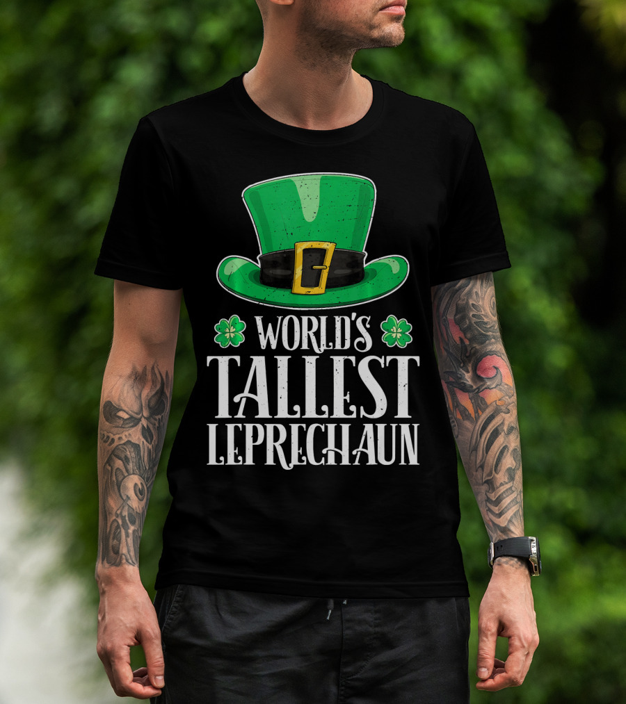 The World's Tallest Leprechaun Hat Clovers St Patricks T-shirt is designed for everyday wear and a consistent fit. Fabric is pre-shrunk ring-spun cotton with durable stitching. See the size chart below for exact measurements.