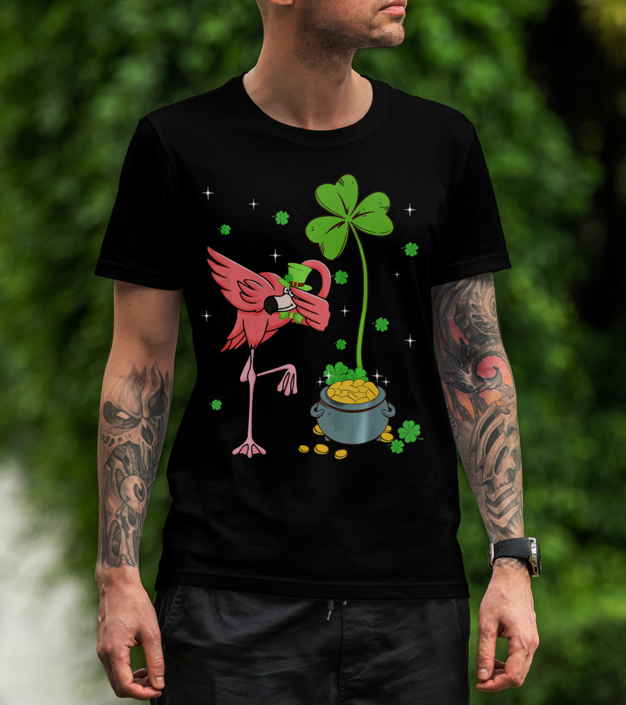 Shamrock Leprechaun Flamingo St Patricks Pot Of Gold T-Shirt