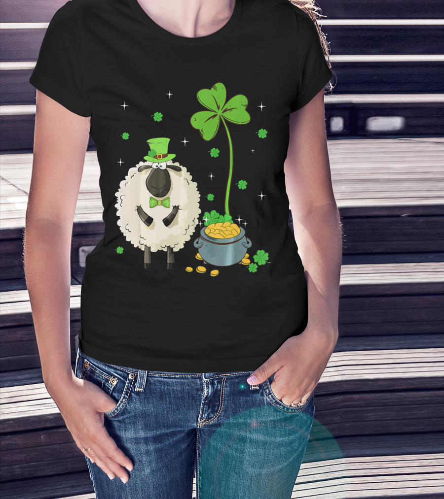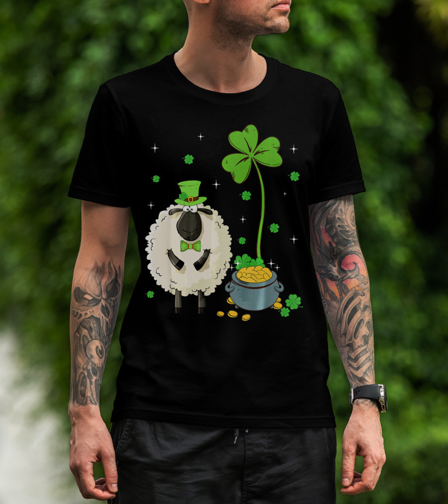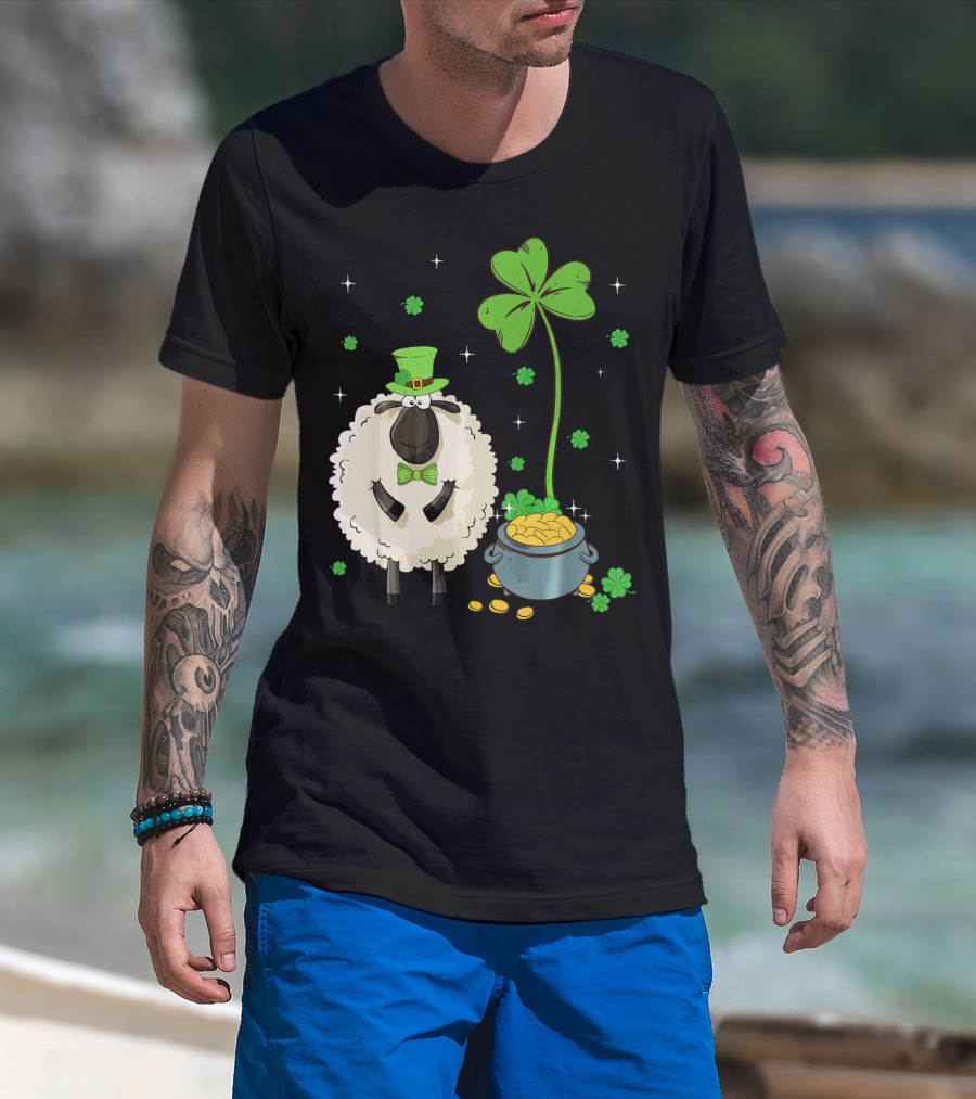Shamrock Leprechaun Sheep With Pot Of Gold And Clover For St Patricks Day T-Shirt
