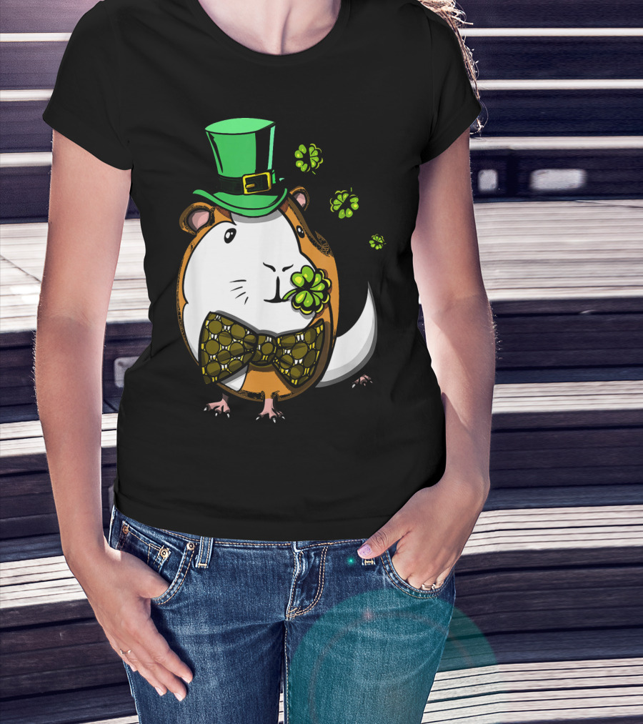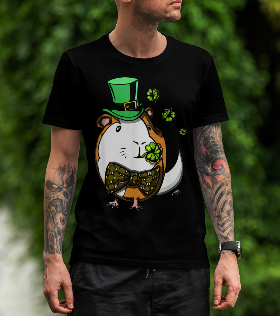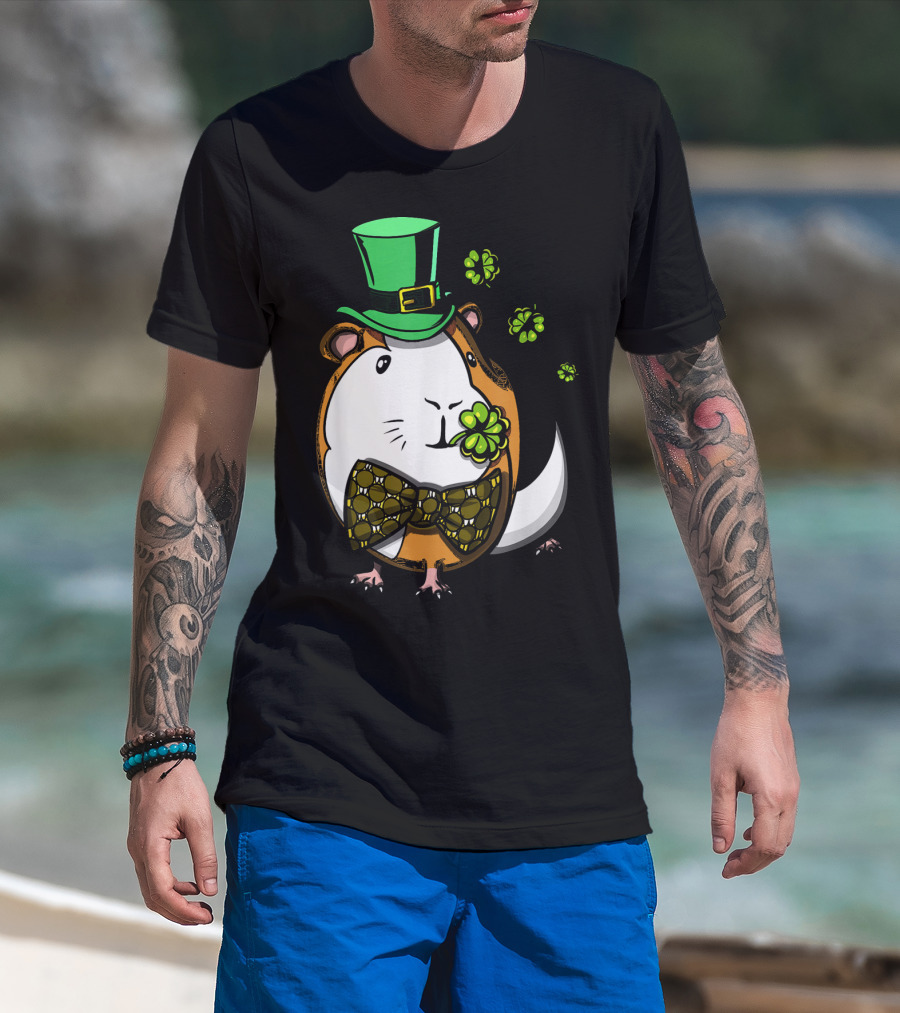 Leprechaun Guinea Pig St Patricks Irish Clover Bow Tie Green Hat T-Shirt