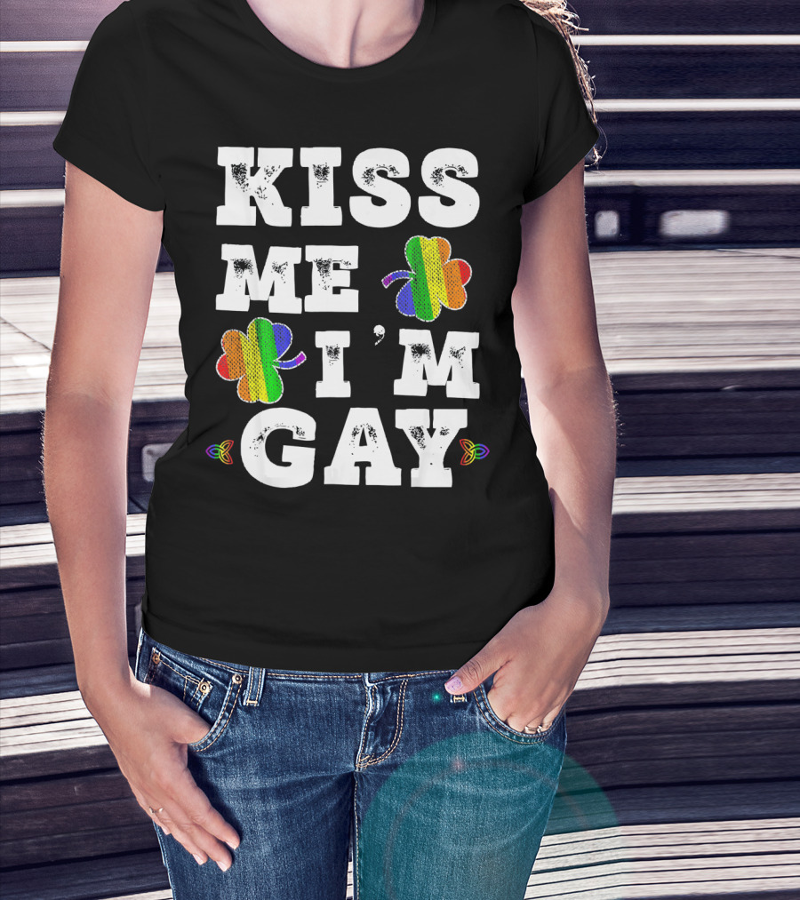 Kiss Me I'm Gay Rainbow Shamrock St. Patrick's Day T-Shirt