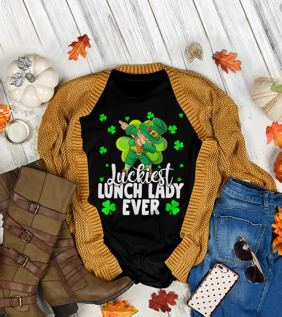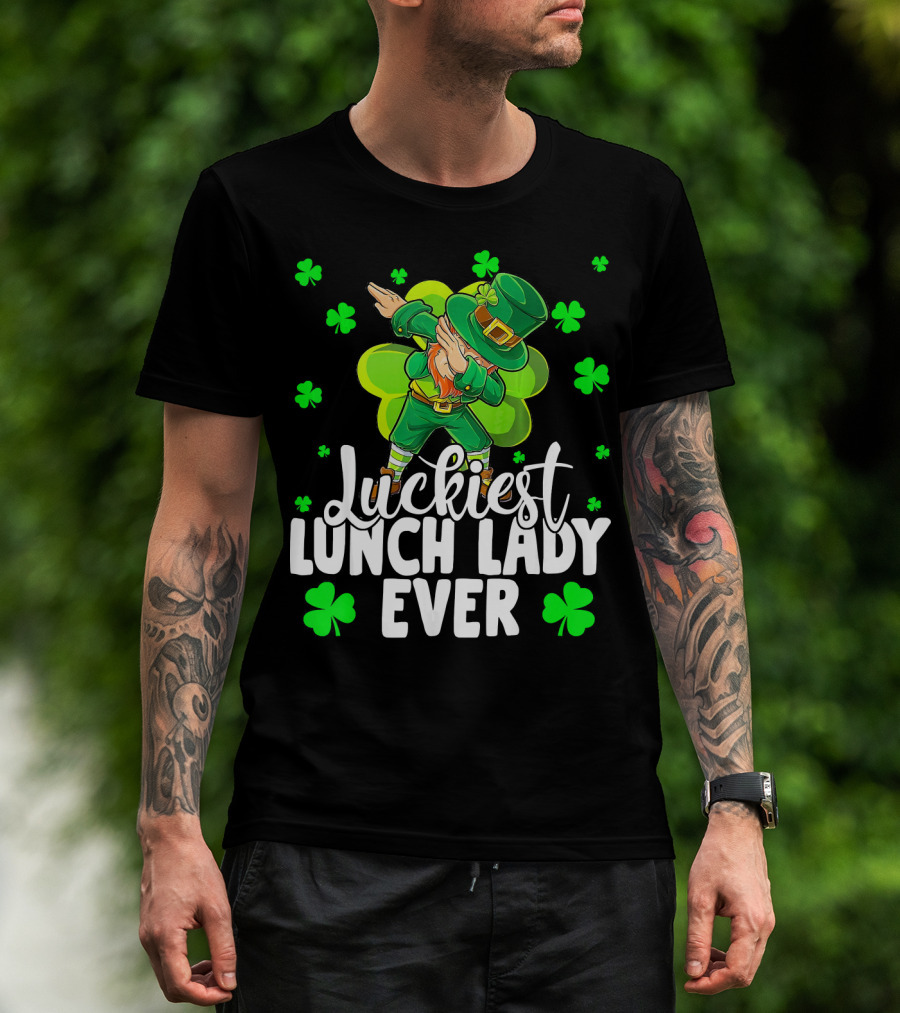 Luckiest Lunch Lady Ever Dancing Leprechaun With Shamrocks T-Shirt