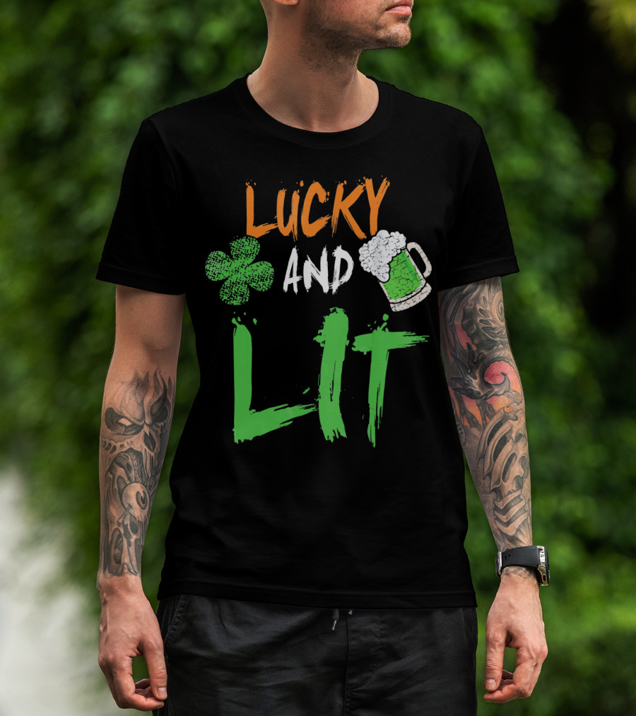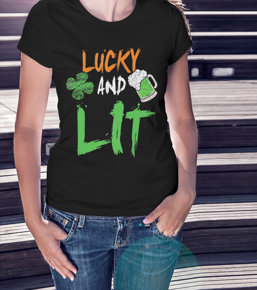 Lucky And Lit Irish Flag Shamrock Beer St. Patrick's Day T-Shirt
