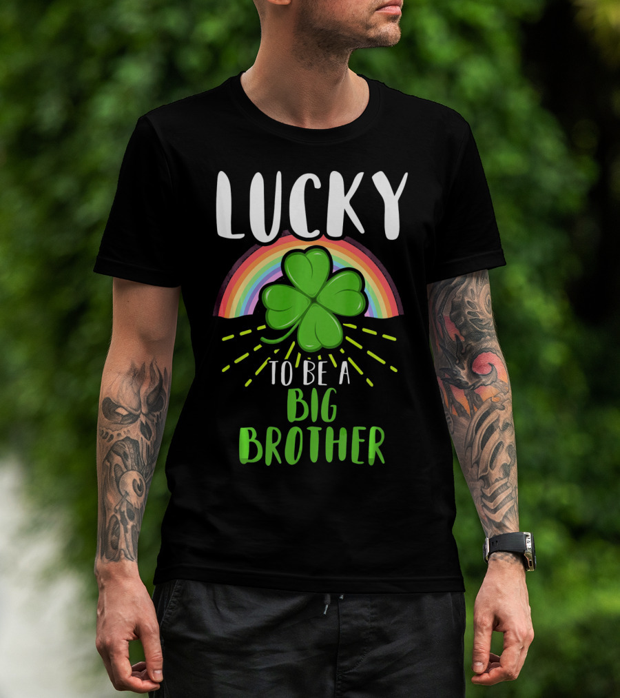 Lucky To Be A Big Brother St Patrick Day Shamrock Rainbow T-Shirt