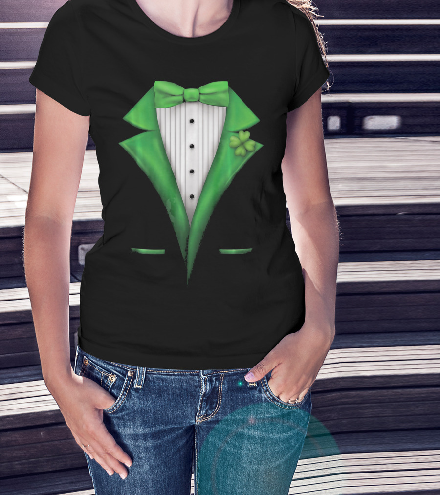 St. Patricks Day Clover Green Tuxedo Bow Tie Classic T-Shirt