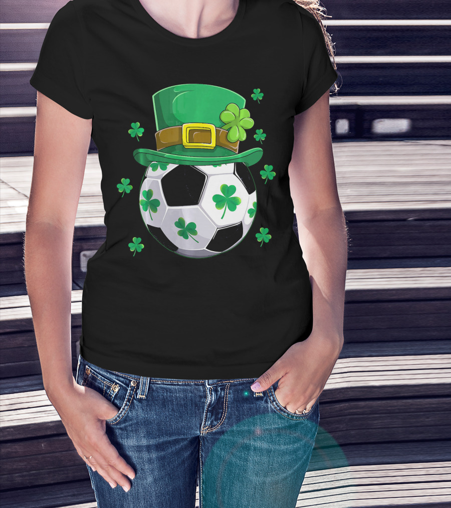 Leprechaun Hat Shamrock Soccer Ball St Patricks Day T-Shirt