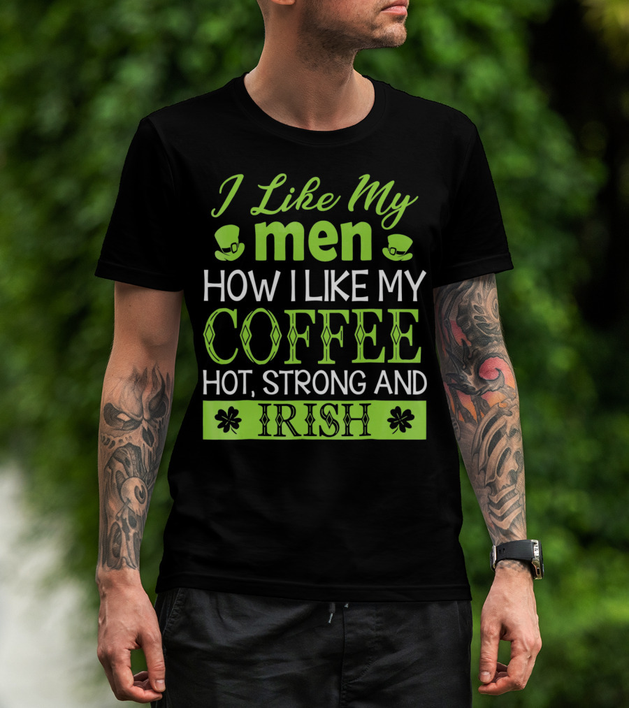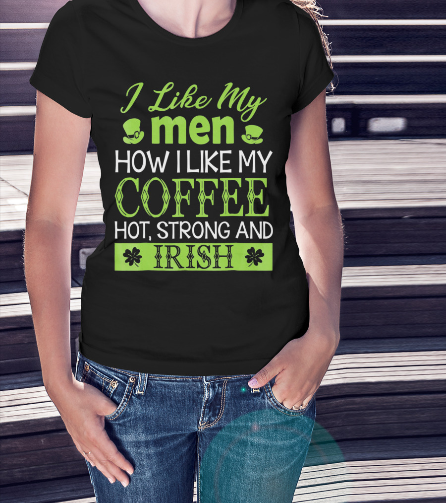 I Like My Men How I Like My Coffee Hot Strong And Irish T-Shirt