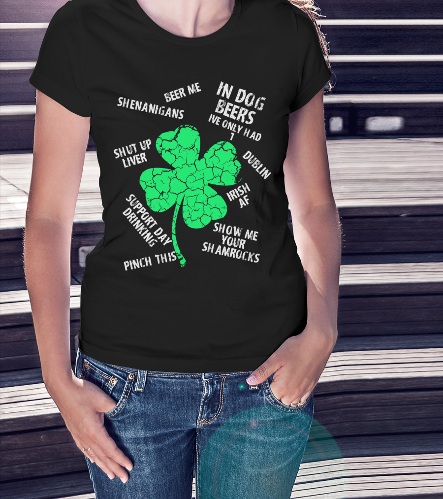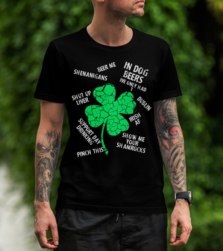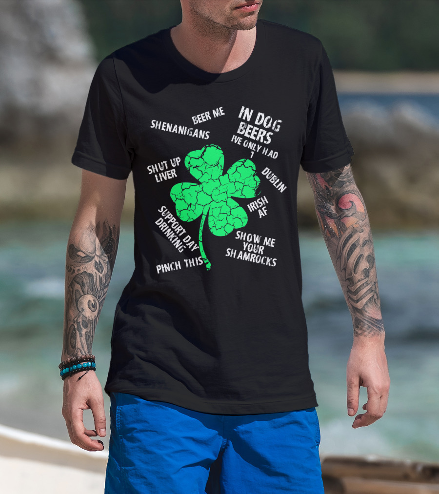 In Dog Beers I've Only Had One Shenanigans Dublin Irish AF Shamrocks Pinch This St. Patricks Day T-Shirt