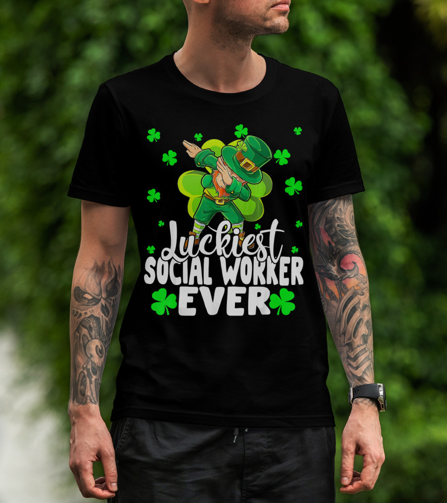Luckiest Social Worker Ever Leprechaun Dab With Shamrocks T-Shirt