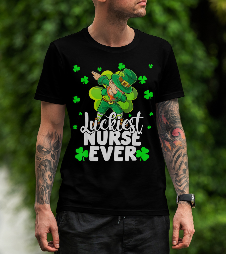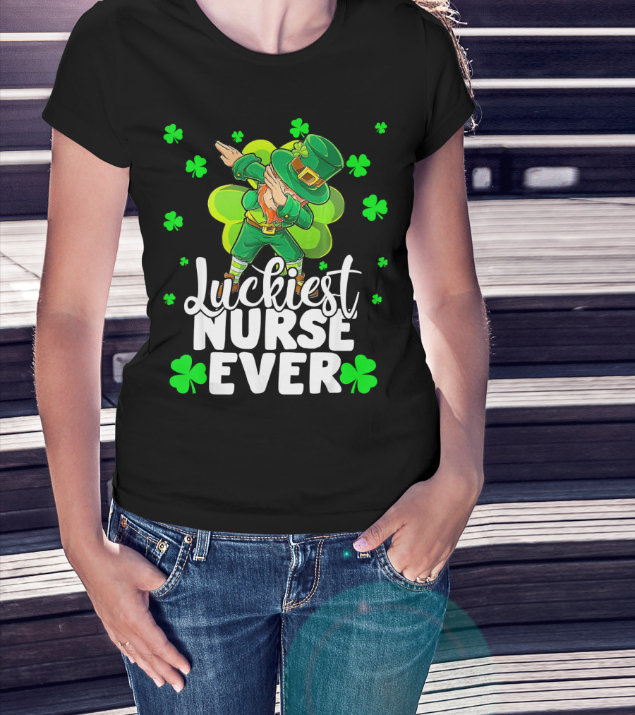 Luckiest Nurse Ever Leprechaun Dab St Patrick's Day Shamrock T-Shirt