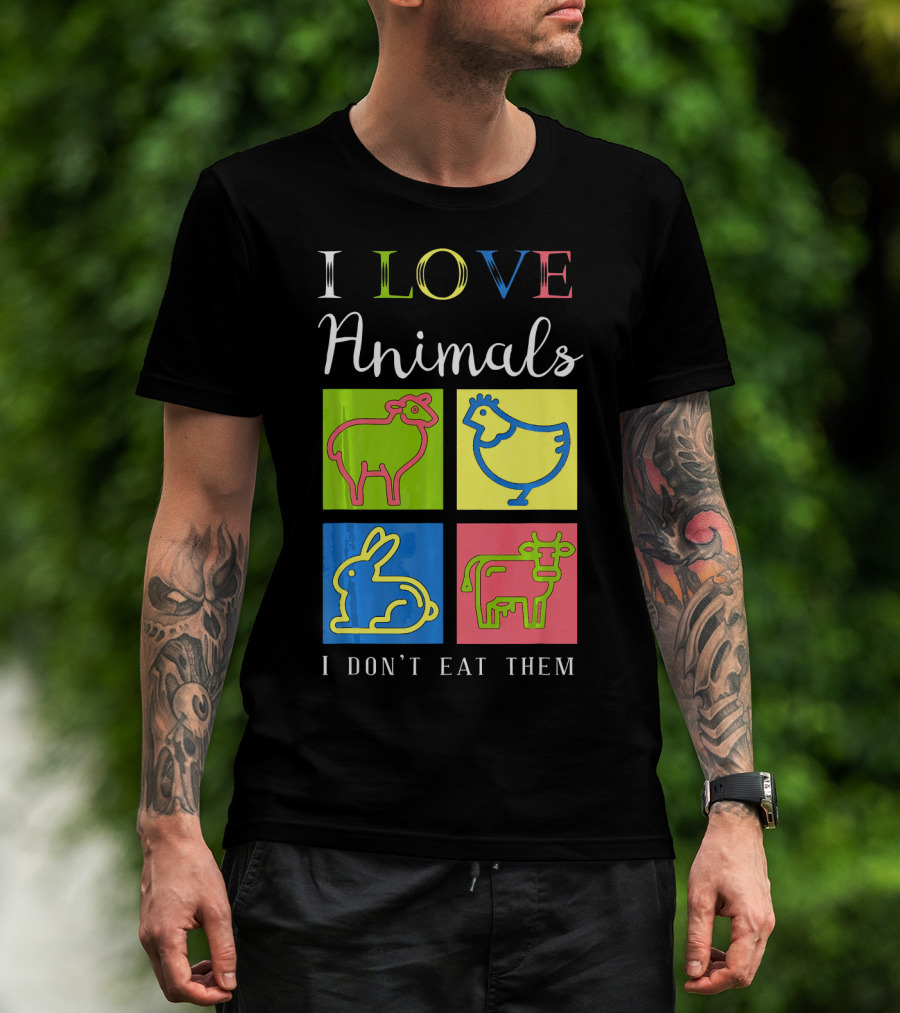 I Love Animals I Don't Eat Them Sheep Chicken Rabbit Cow Funny Veg T-Shirt
