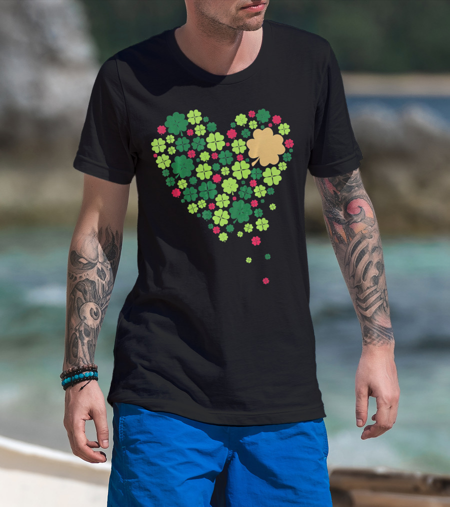Cute Heart Of Four Leaf Clovers St Patrick's Day Lucky T-Shirt
