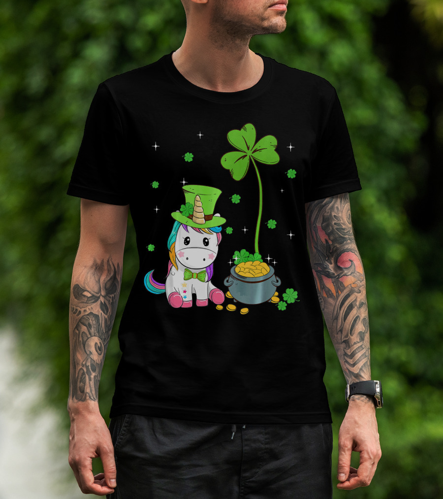 Shamrock Leprechaun Unicorn St Patricks Pot Of Gold T-Shirt