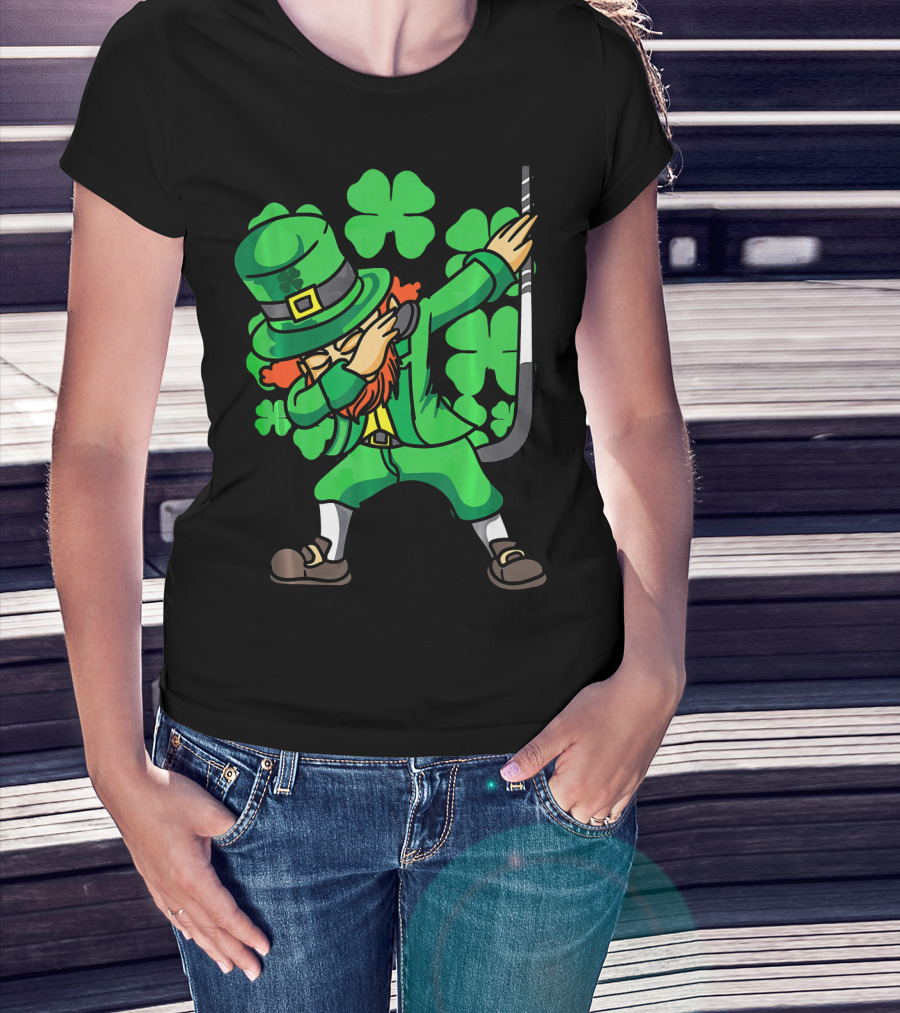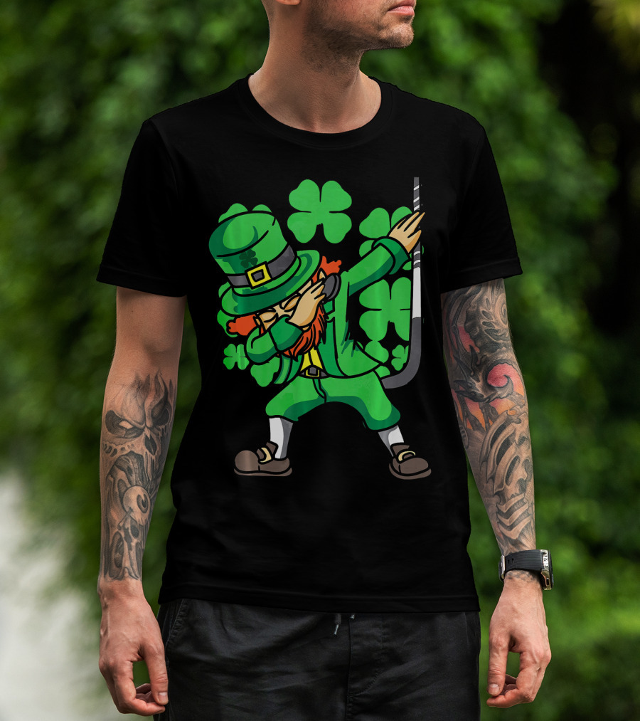 Dabbing Leprechaun Hockey Stick With Shamrocks St. Patrick's Day T-Shirt