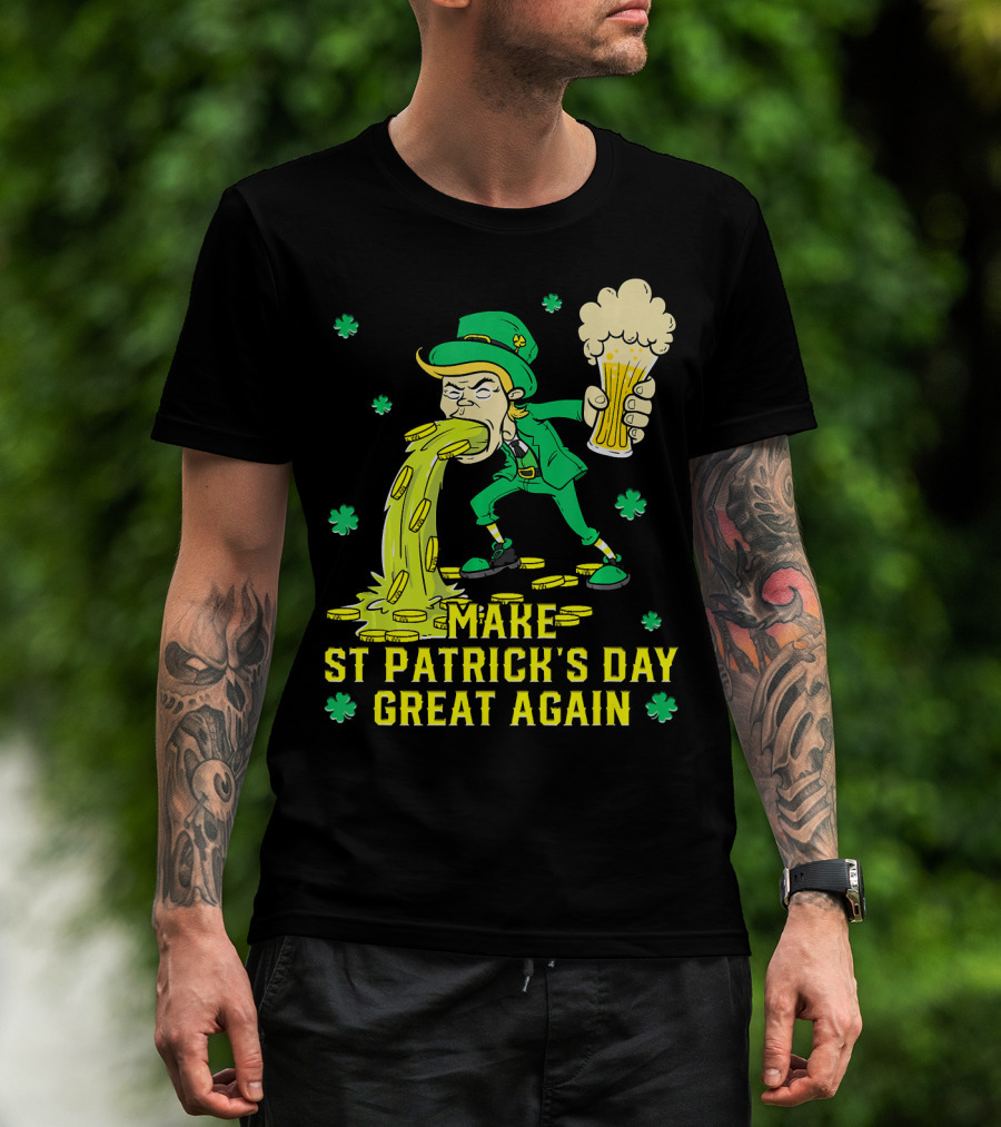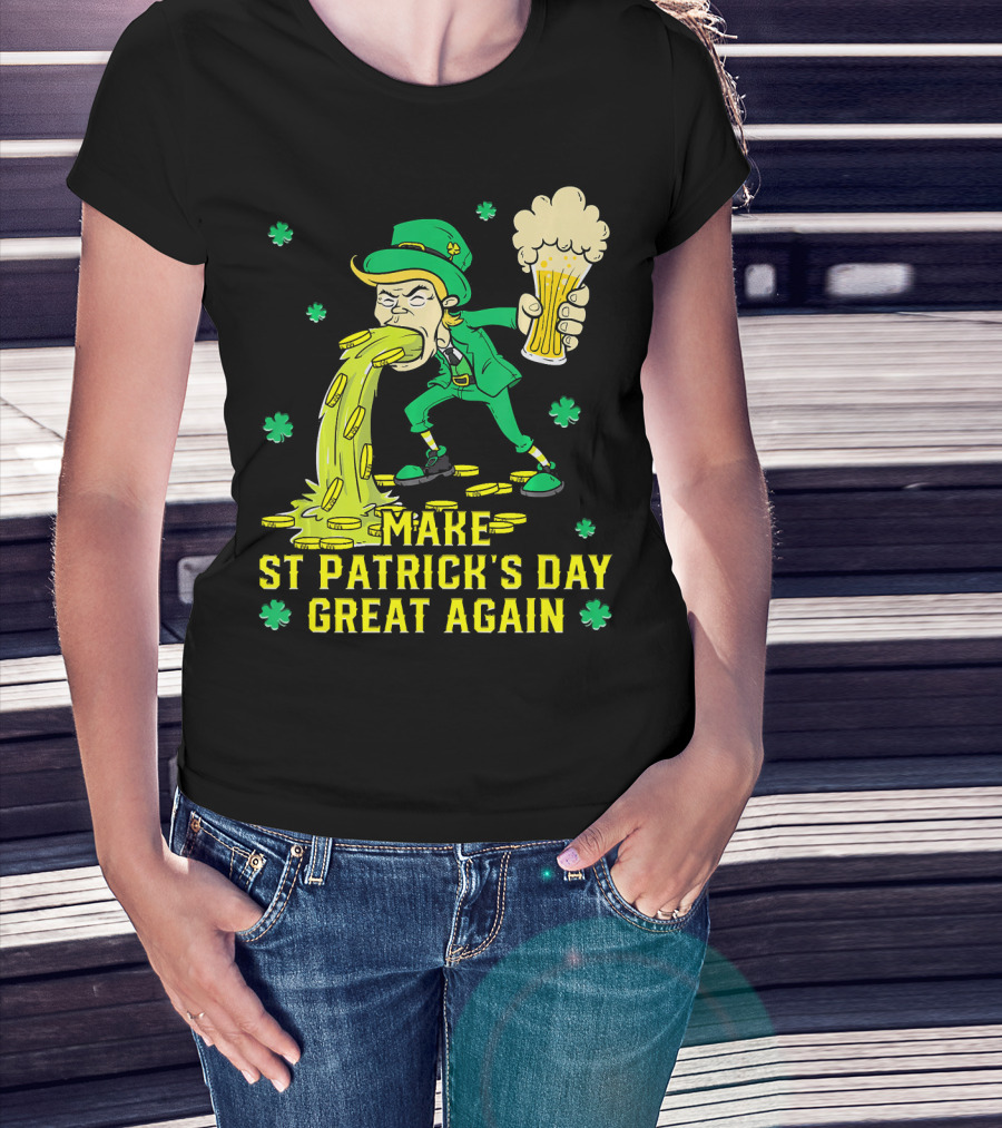 Make St Patrick's Day Great Again Leprechaun With Beer And Gold Coins T-Shirt