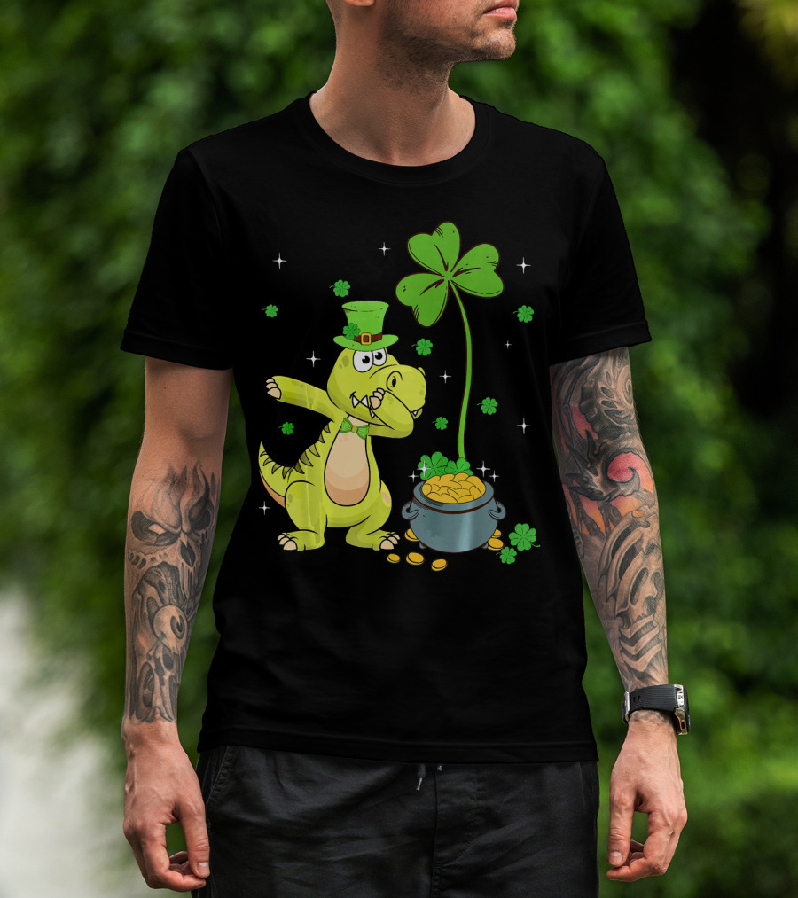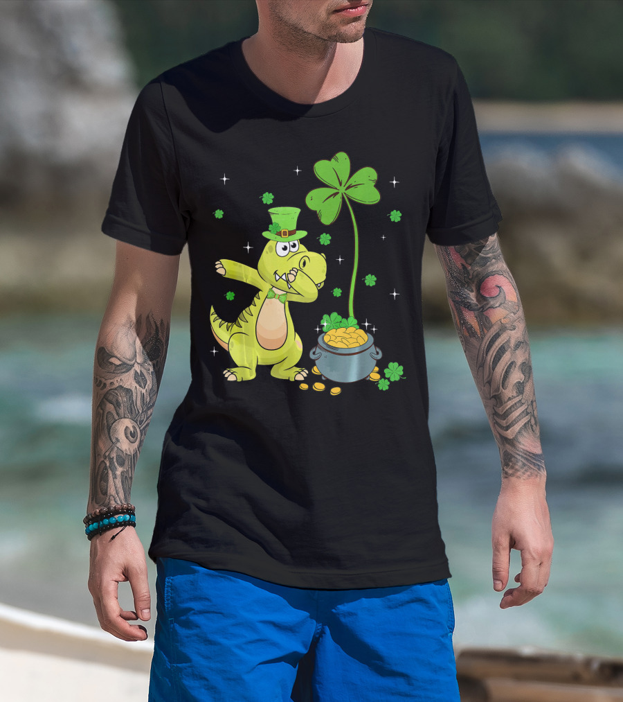 Shamrock Dabbing Dinosaur Leprechaun Gold Pot St Patricks T-Shirt