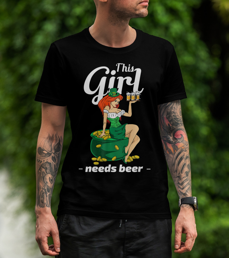 This Girl Needs Beer St Patricks Day Leprechaun Pot Of Gold T-Shirt