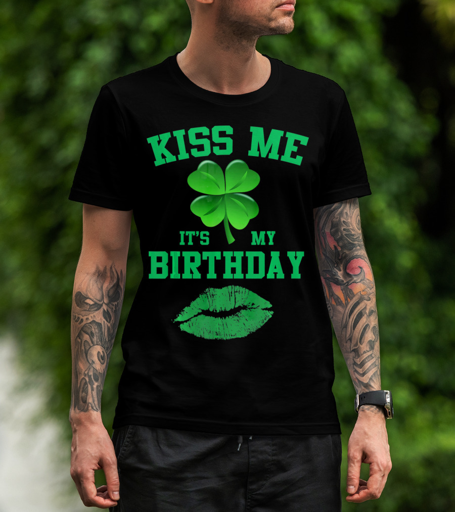 Kiss Me It's My Birthday Irish Shamrock And Green Lips T-Shirt