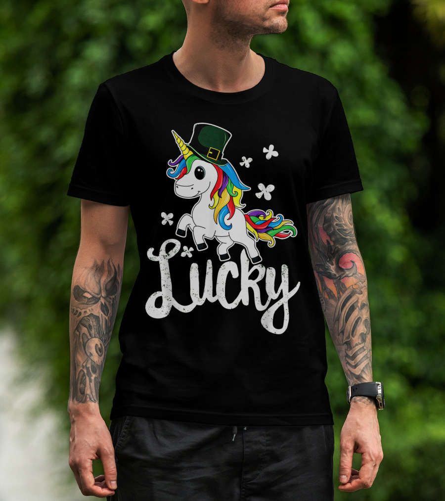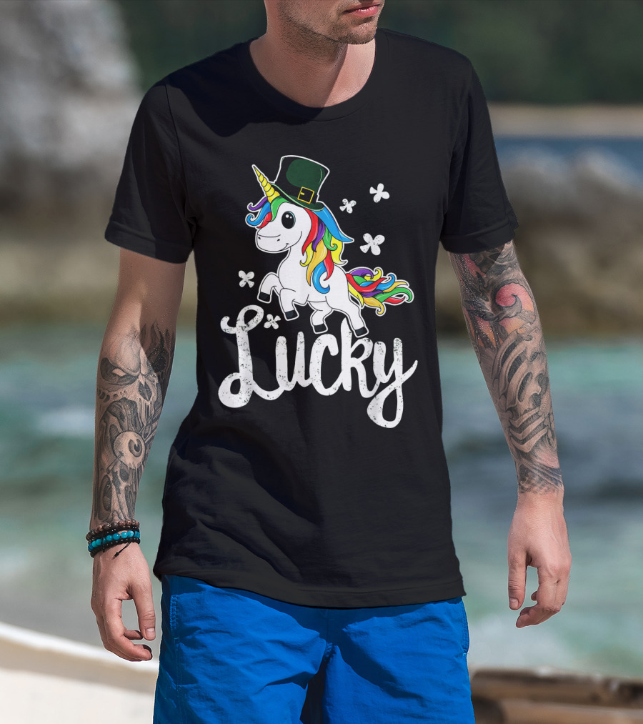 Lucky Unicorn Rainbow Shamrock Hat T-Shirt