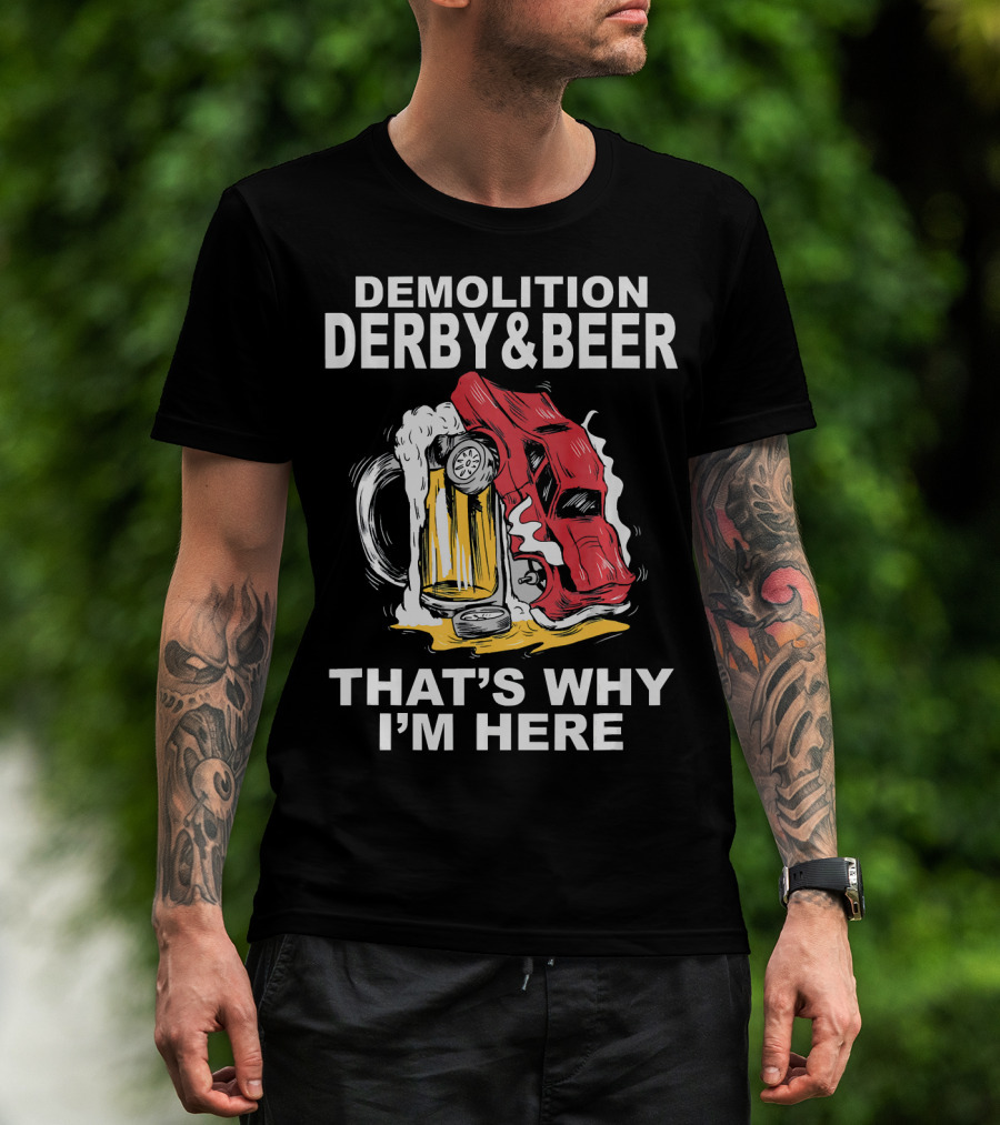 Demolition Derby And Beer Red Crashing Car That's Why I'm Here T-Shirt