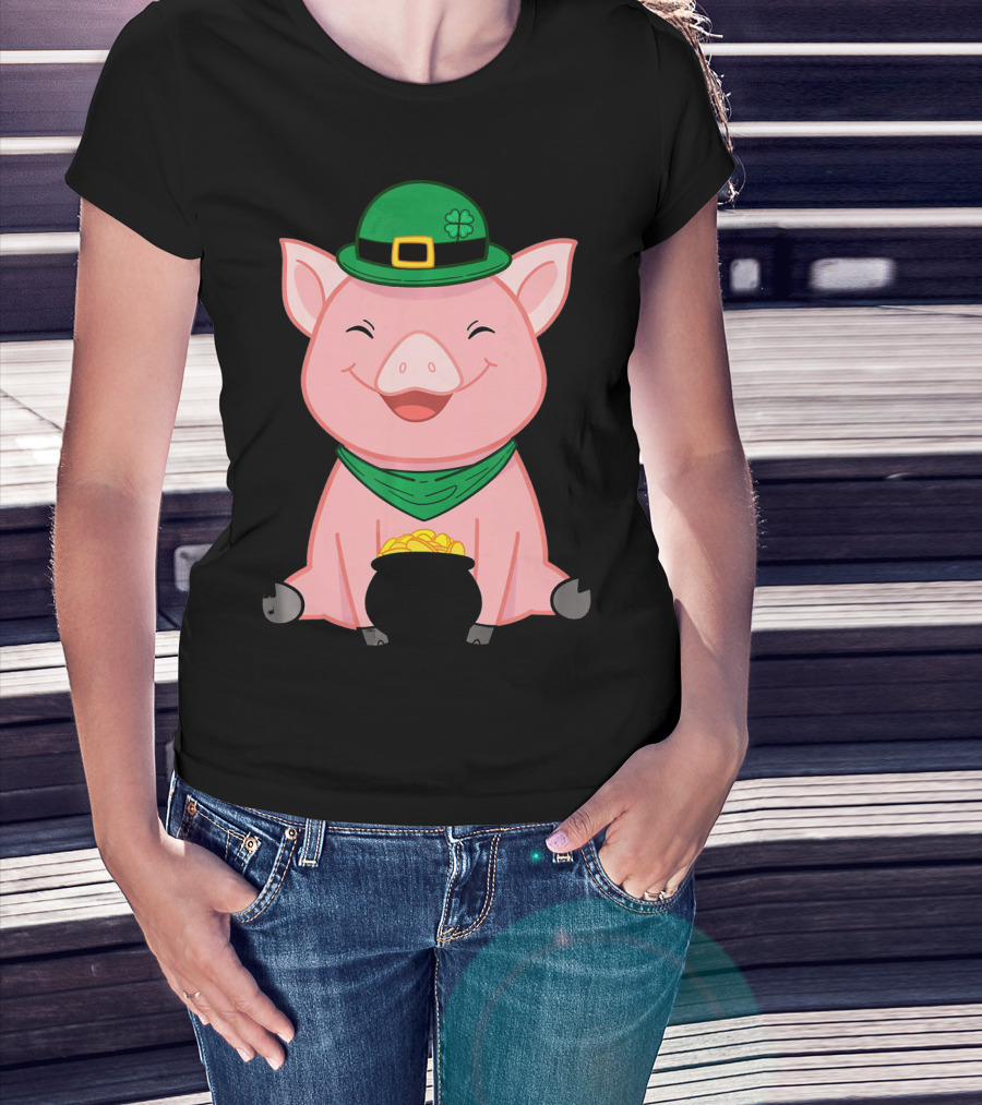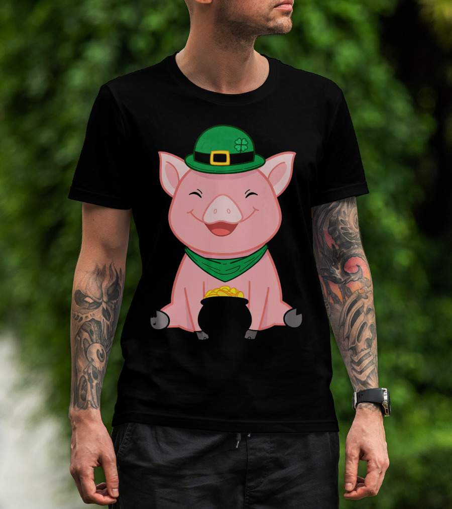 Cute Pig St. Patrick's Day Hat And Gold Pot T-Shirt