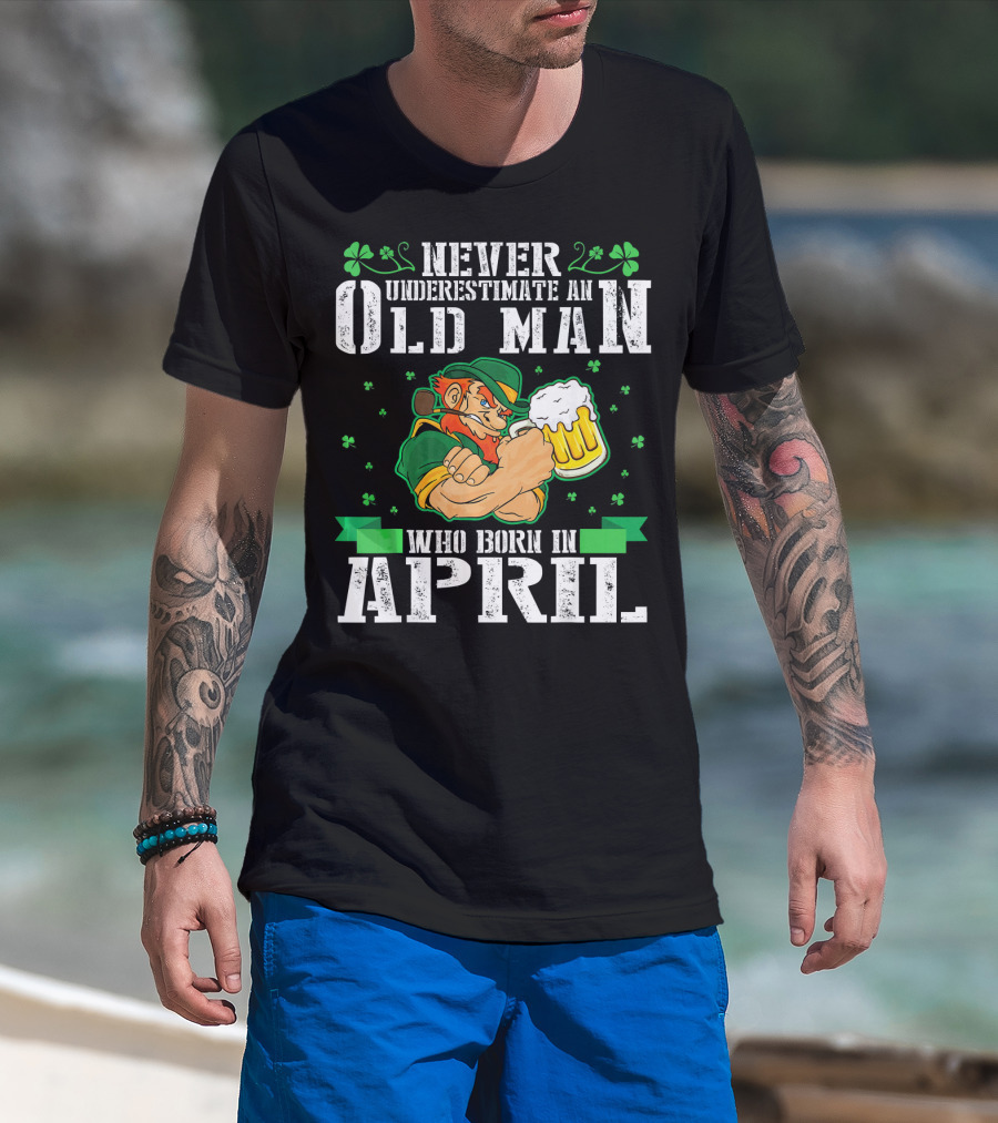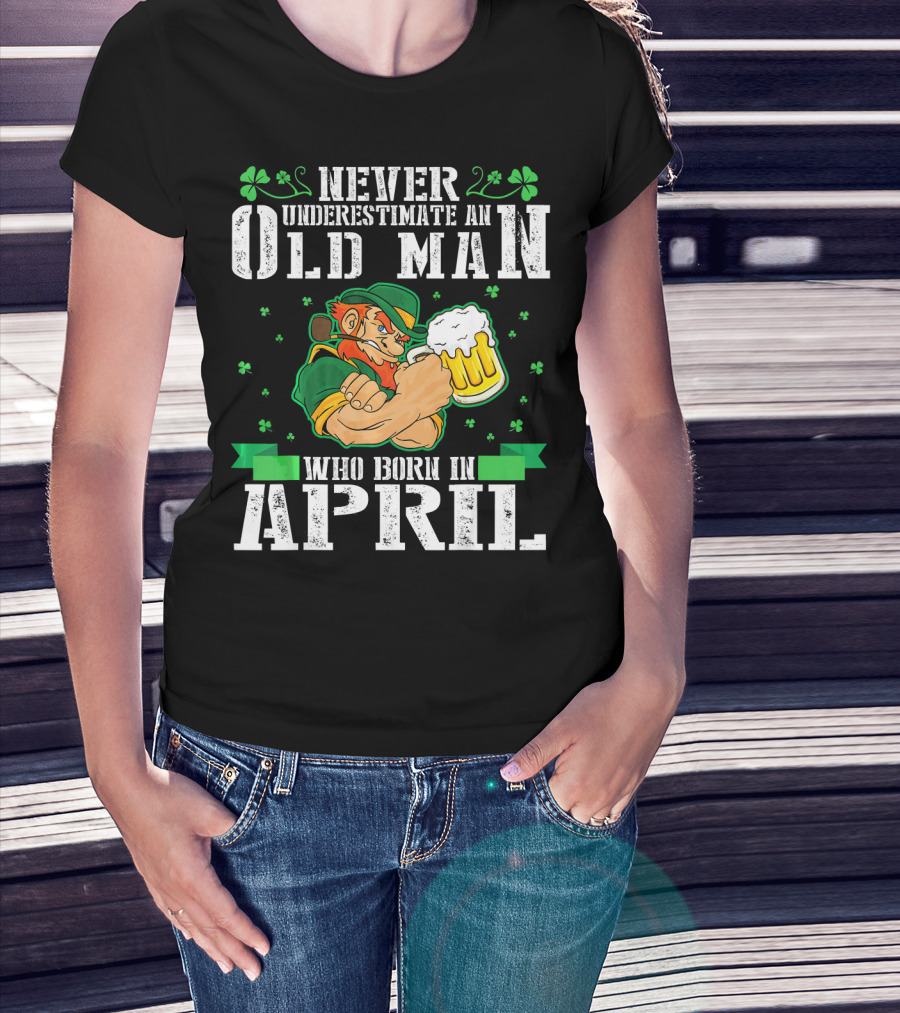 Never Underestimate An Old Man Born In April Leprechaun Beer T-Shirt