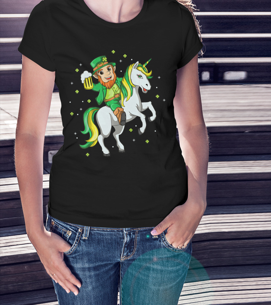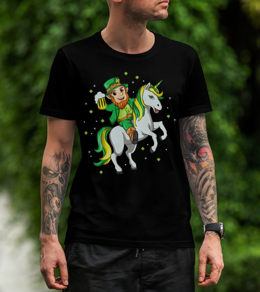 Lepricorn Irish Unicorn With Beer Mug And Shamrocks T-Shirt