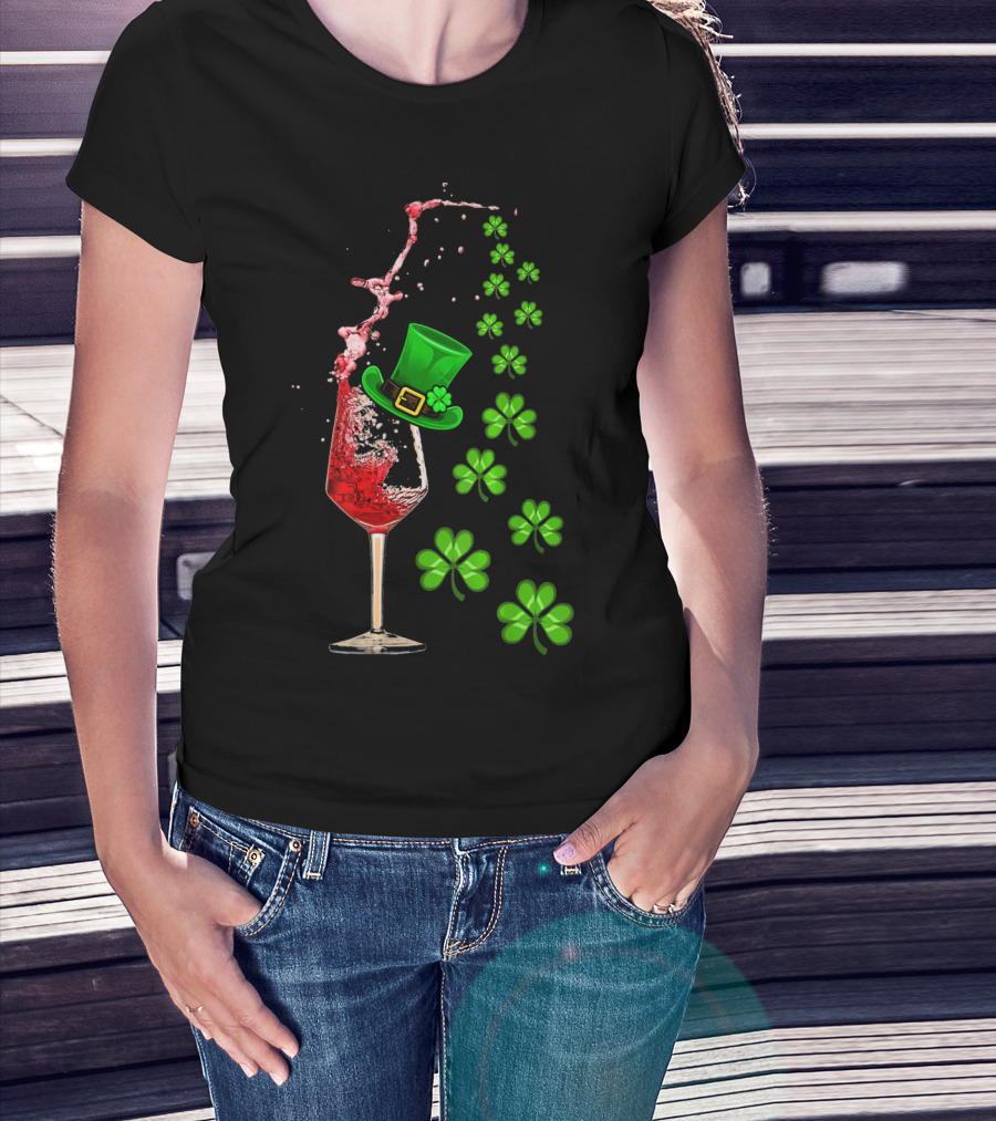 St Patricks Day Wine Glass Splash With Shamrocks And Top Hat T-Shirt