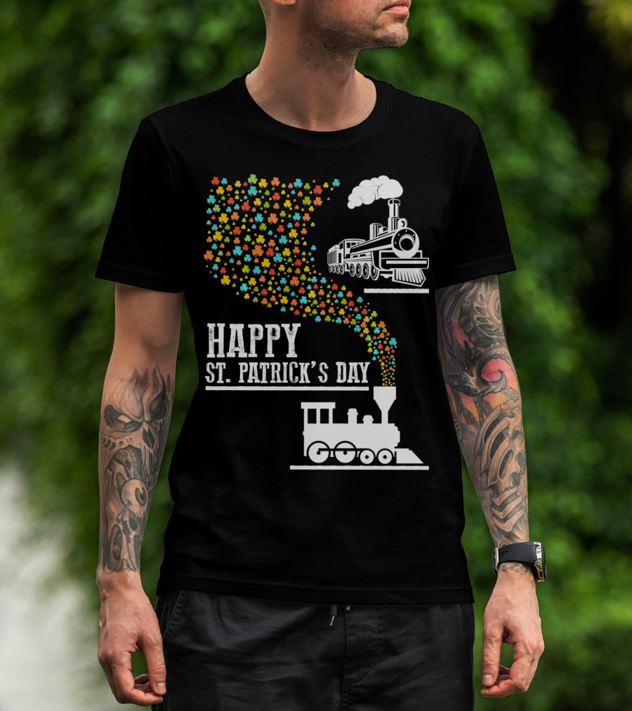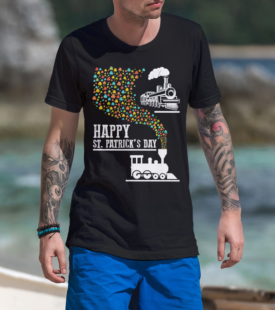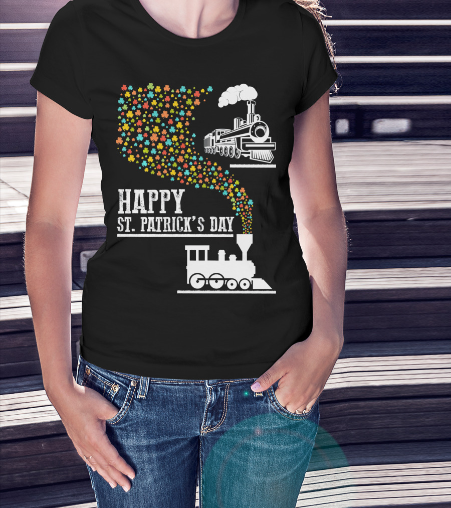 Happy St Patrick's Day Irish Shamrock Train Steam Puff T-Shirt