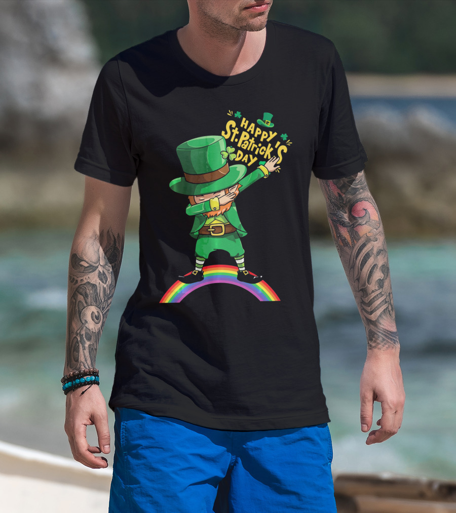 Happy St. Patrick's Day Leprechaun Dab On Rainbow T-Shirt