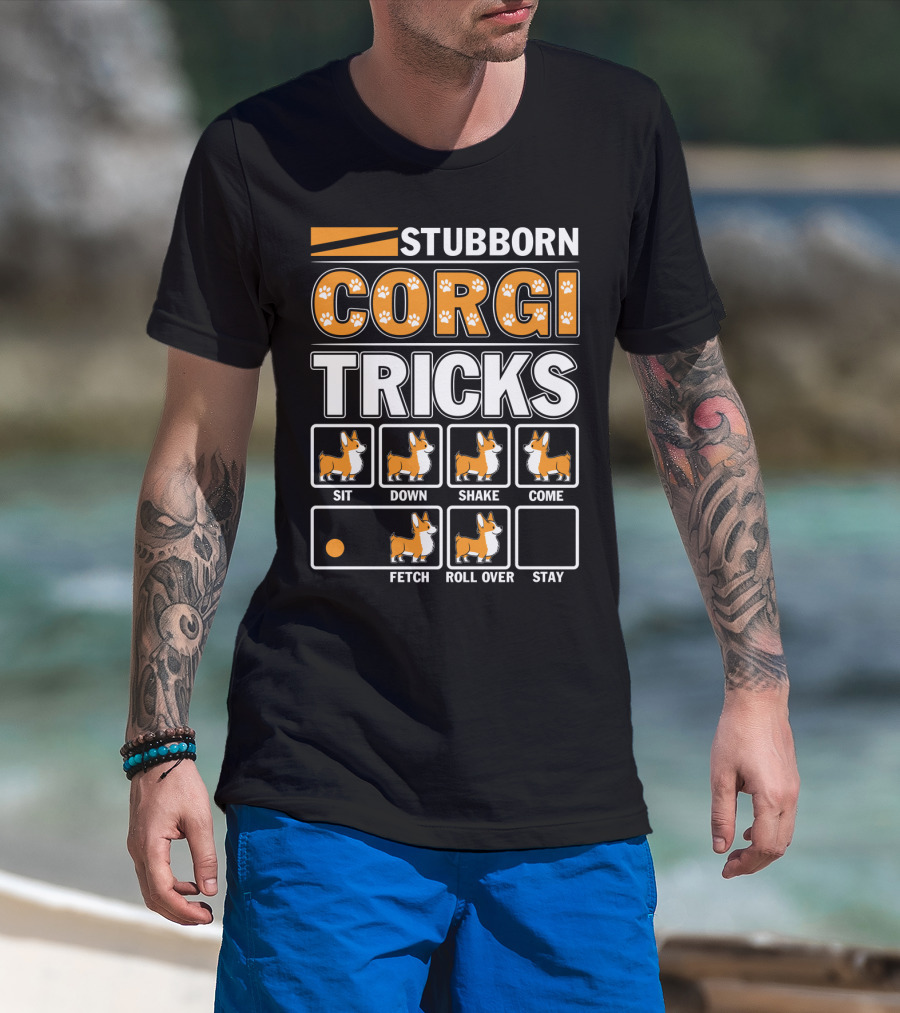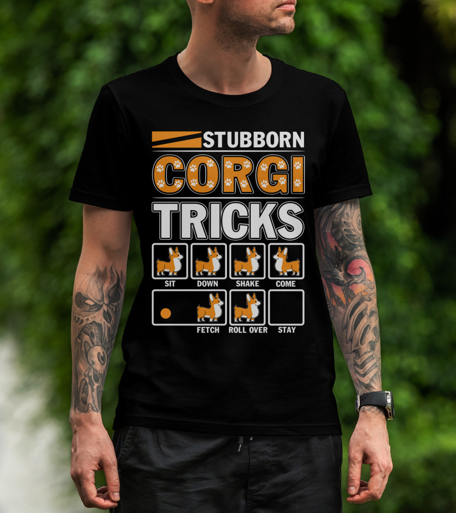 STUBBORN CORGI TRICKS SIT DOWN SHAKE COME FETCH ROLL OVER STAY T-Shirt