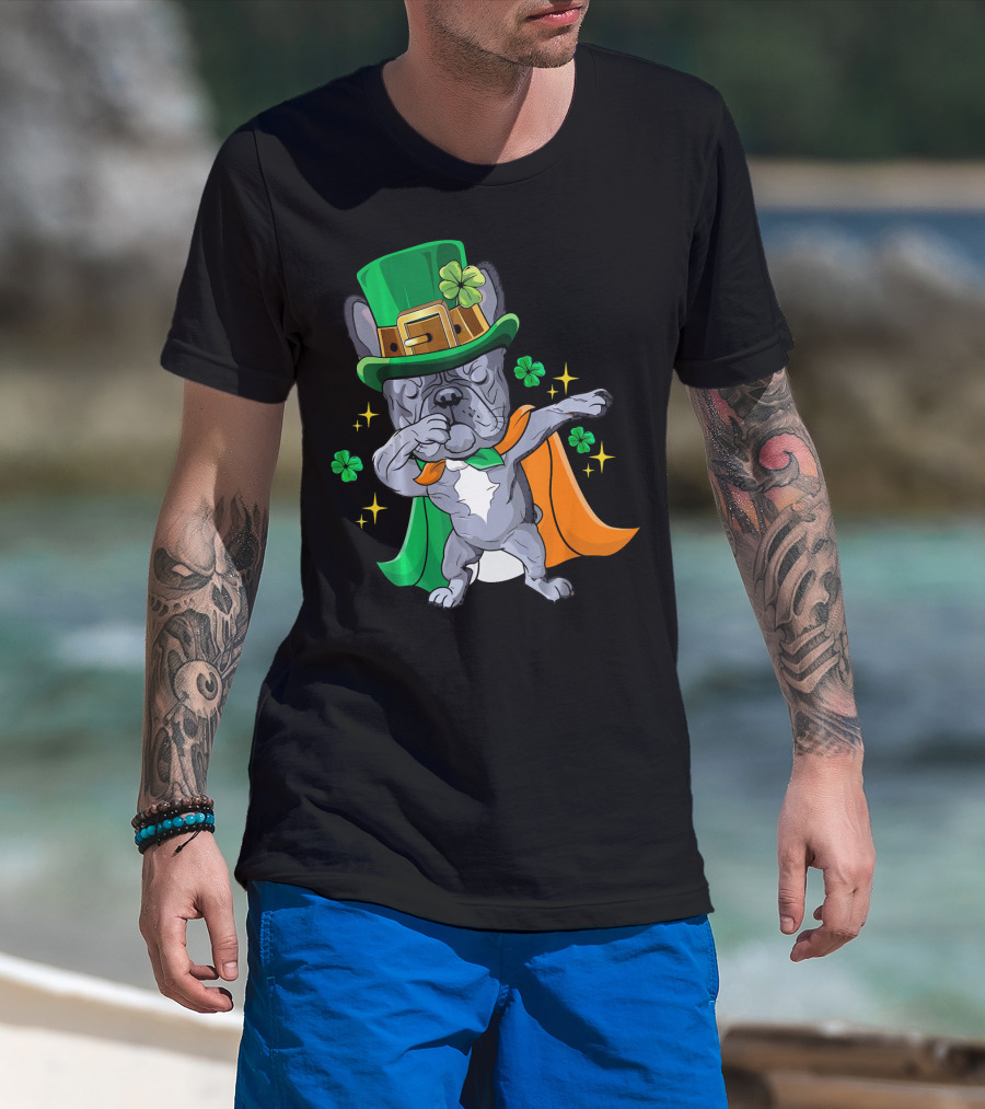 Dabbing French Bulldog Leprechaun St Patrick's Day Shamrocks T-Shirt
