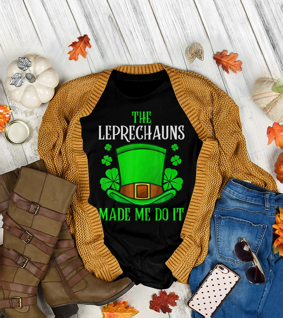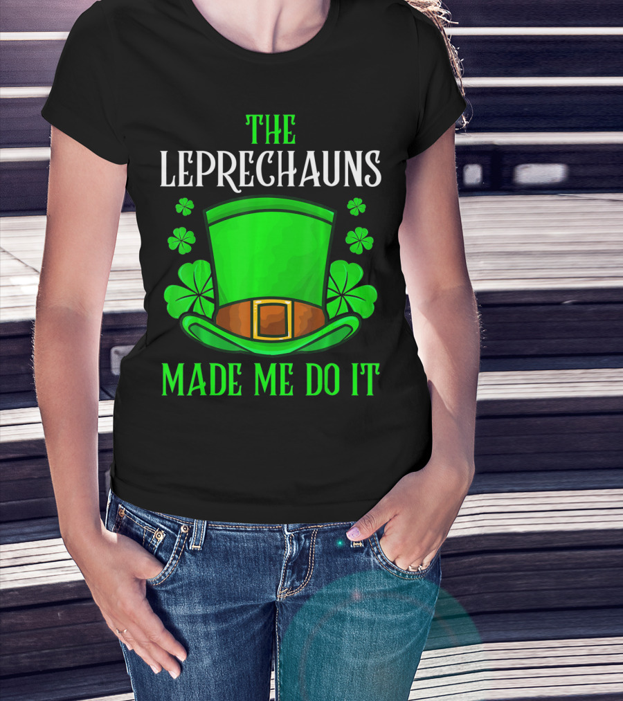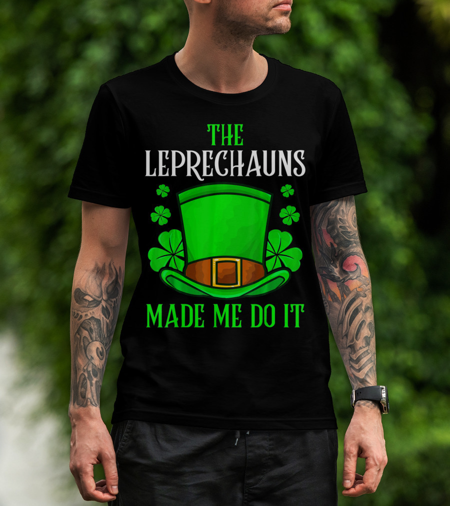 The Leprechauns Made Me Do It Hat Shamrocks T-Shirt
