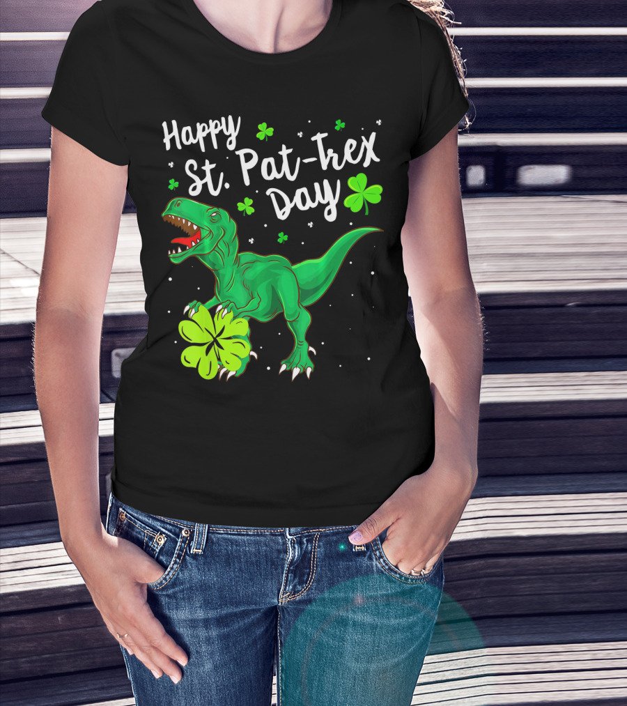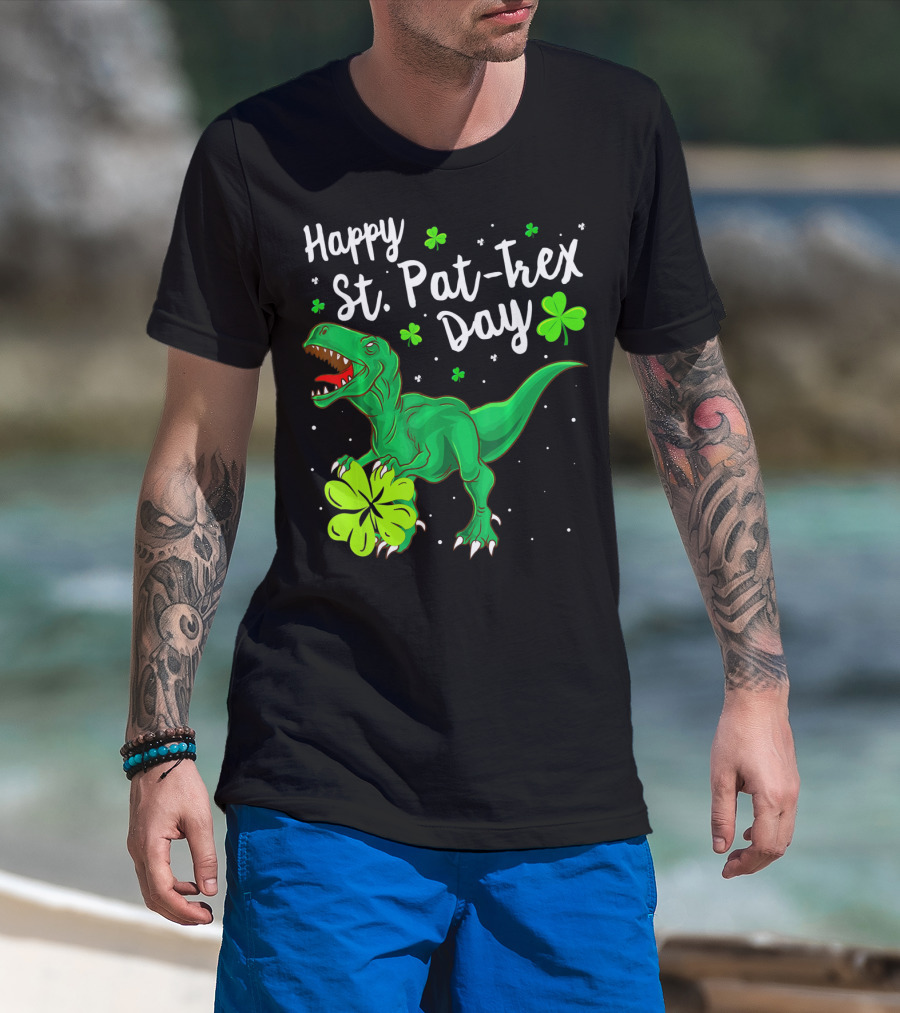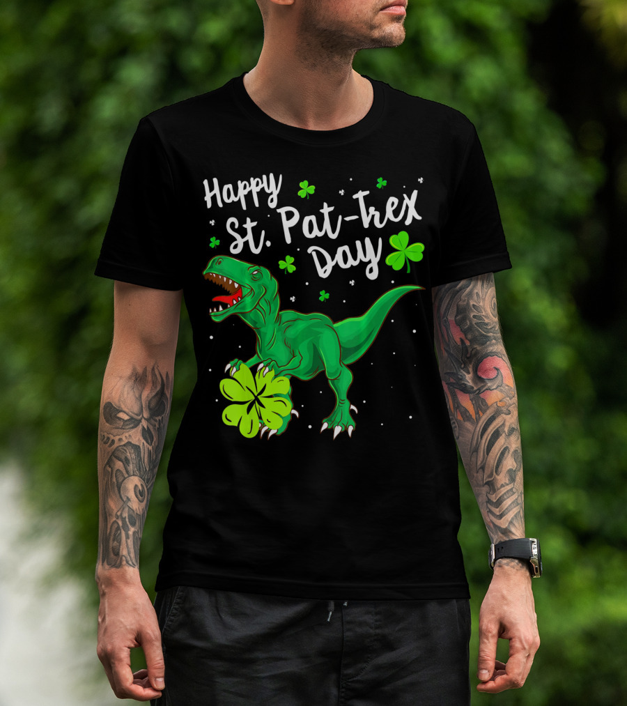 Happy St Pat Trex Day With Shamrock Dinosaurs T-Shirt