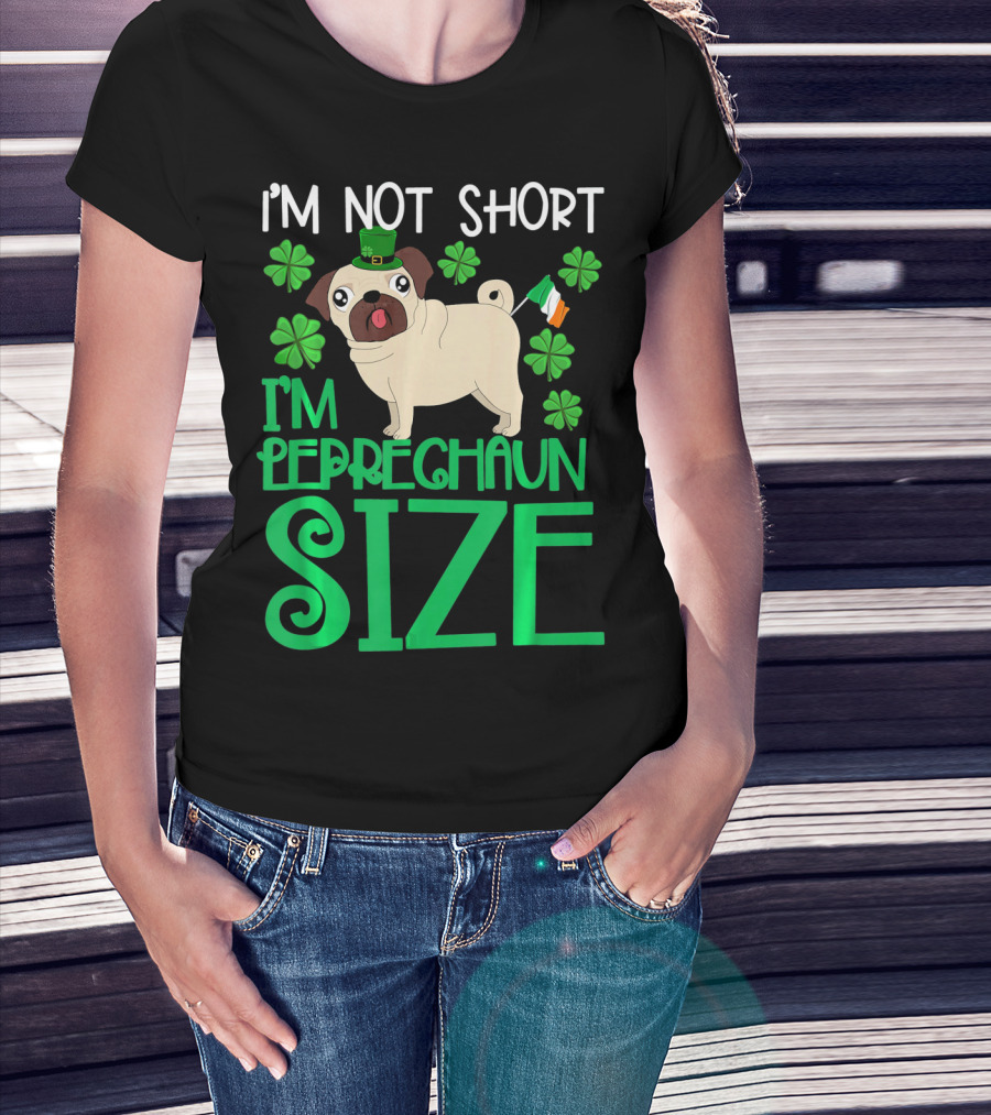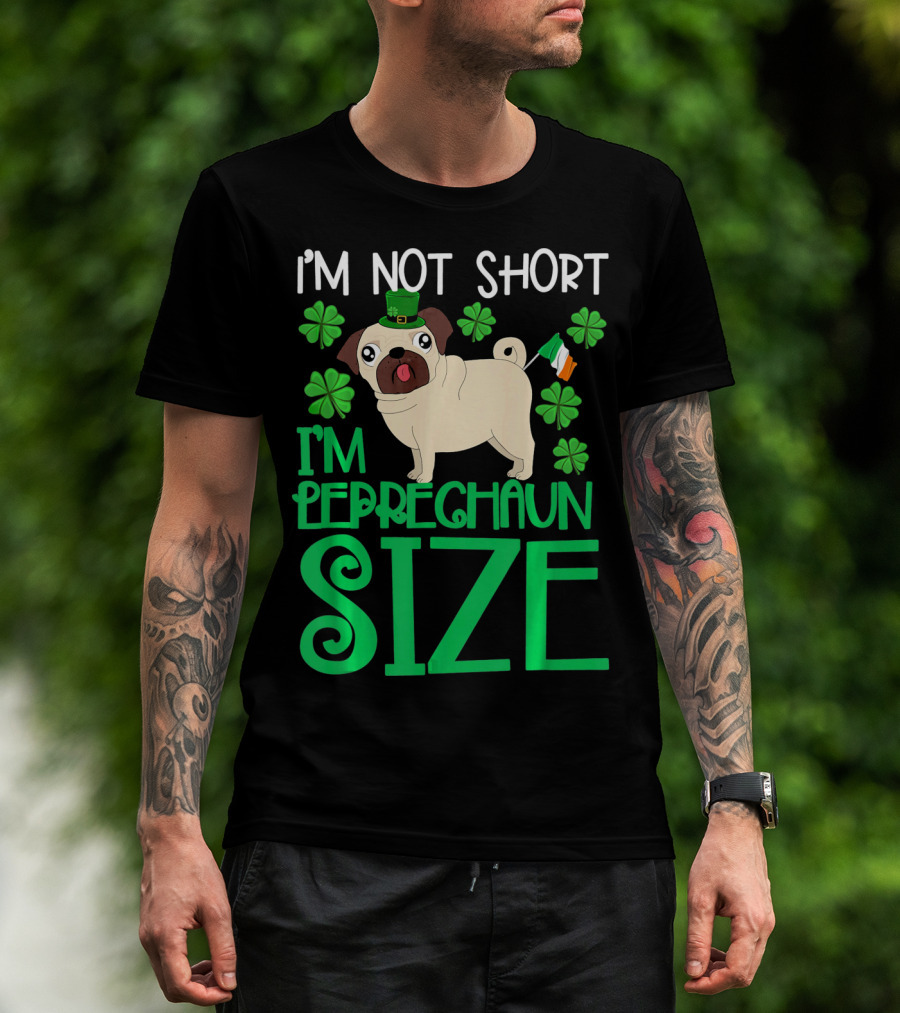 I'm Not Short I'm Leprechaun Size St Patricks Day Pug With Shamrocks T-Shirt