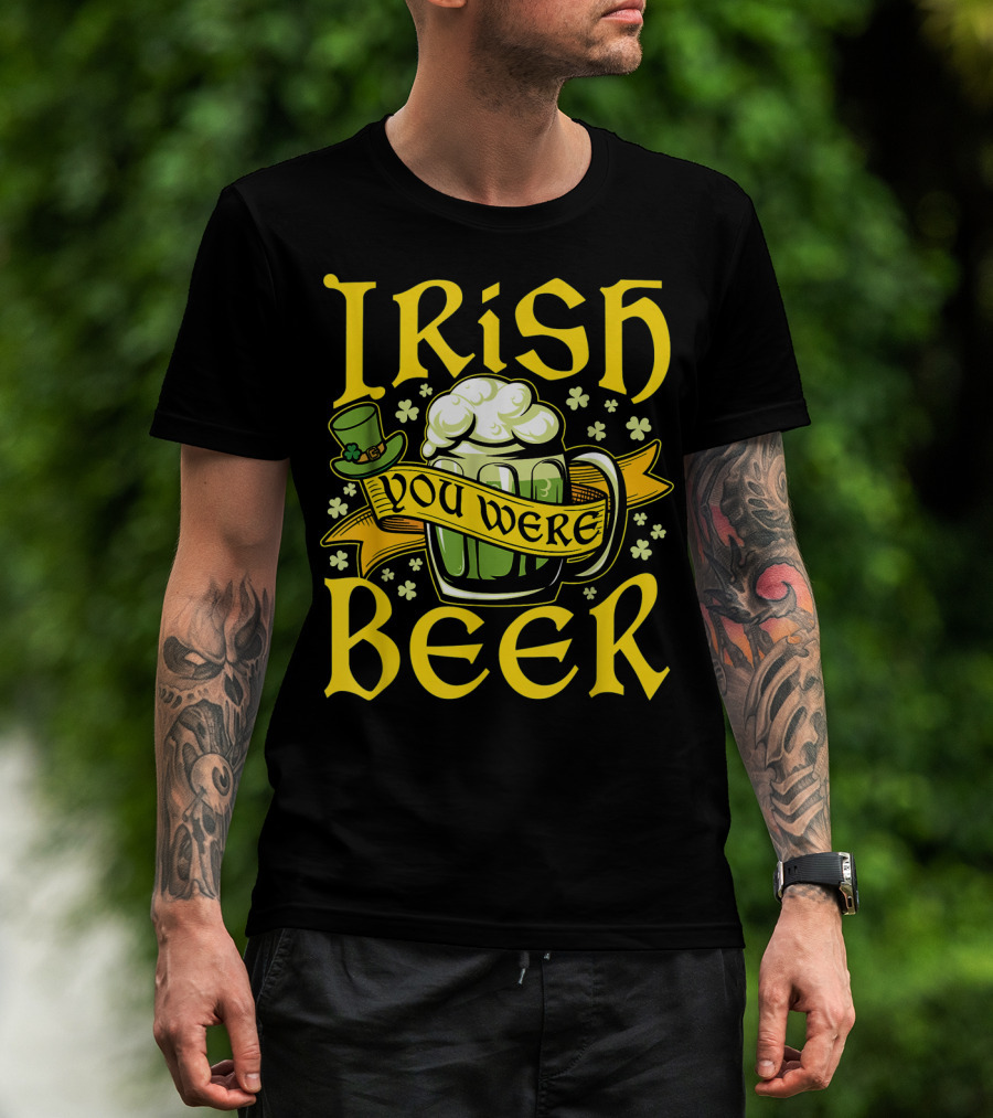 Irish You Were Beer St. Patricks Mug And Hat With Shamrocks T-Shirt