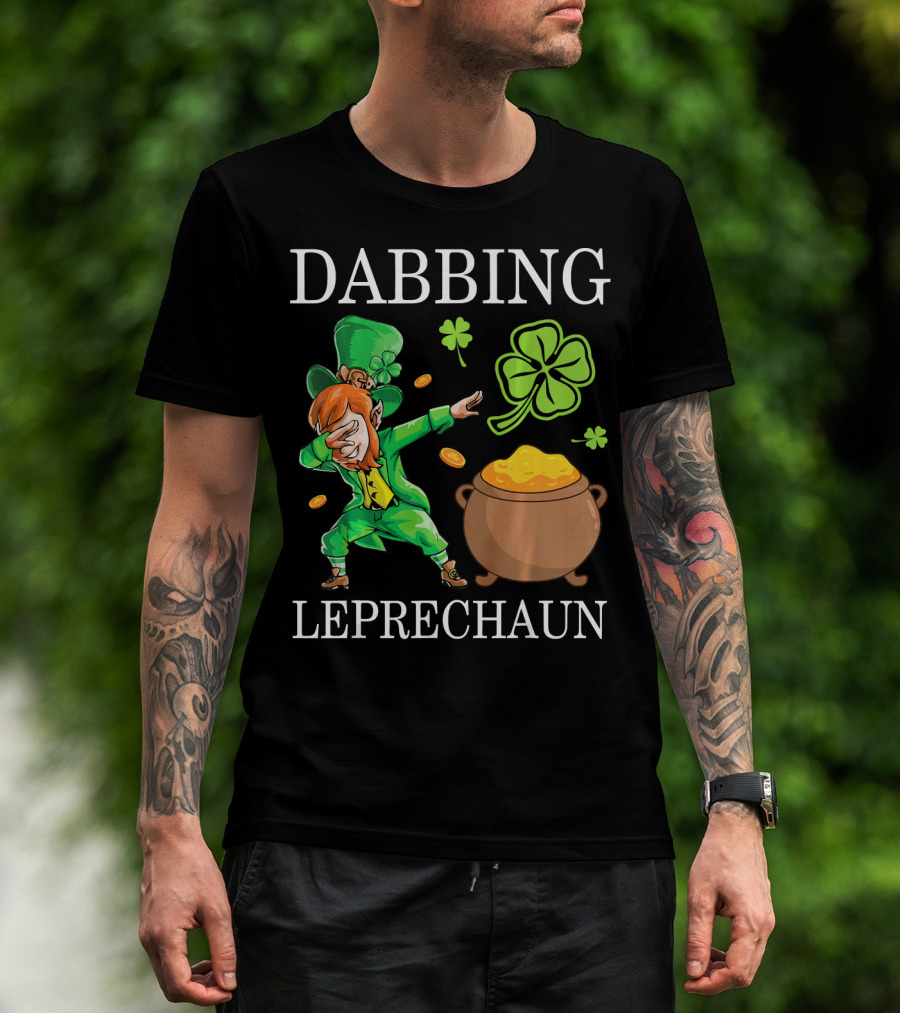 Dabbing Leprechaun Clover And Gold Coins T-Shirt