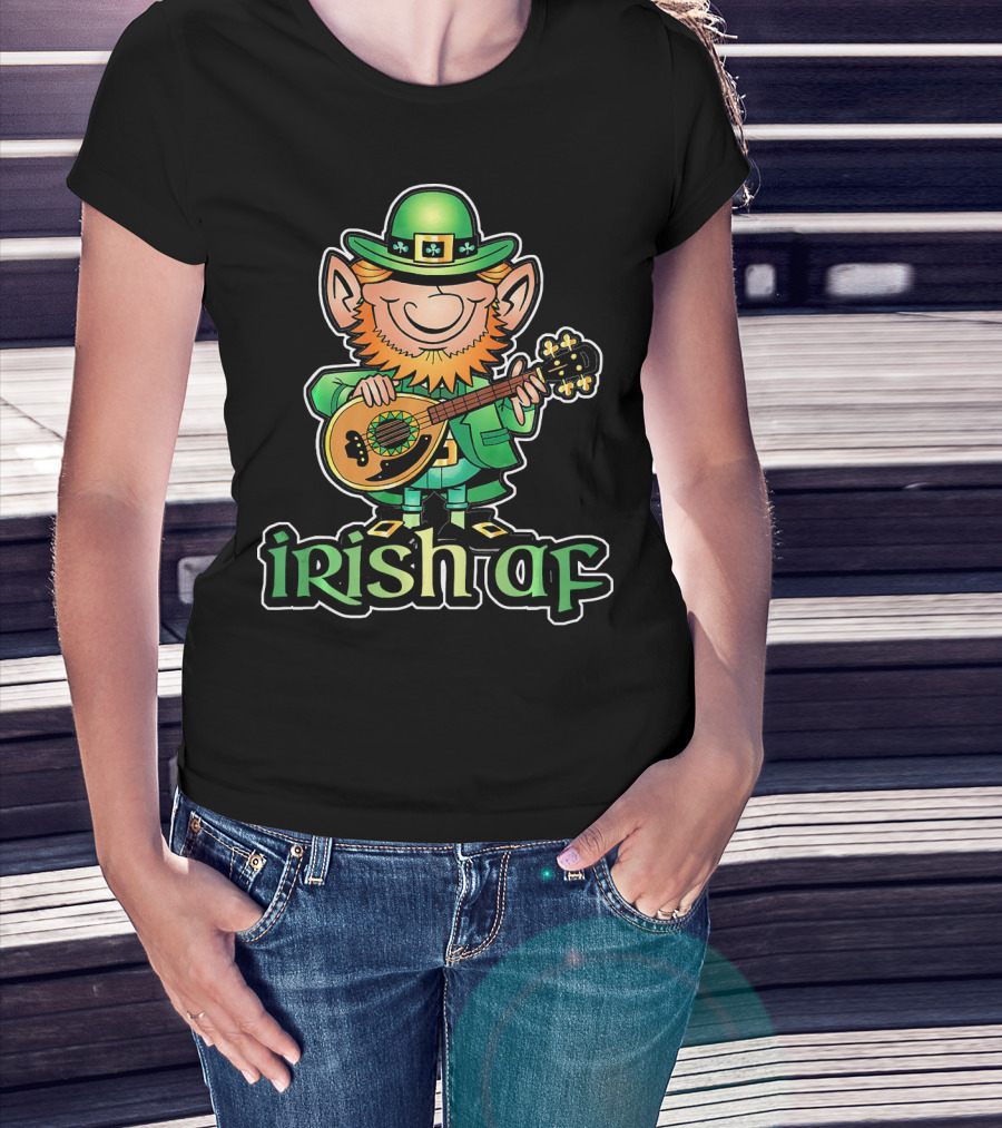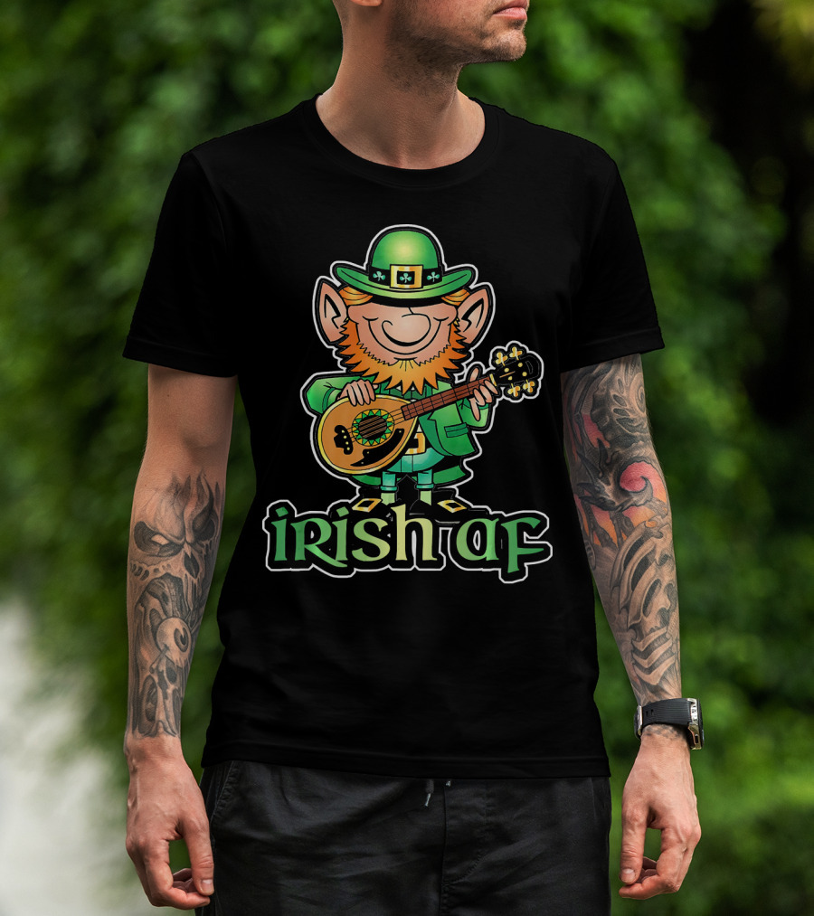 Funny Leprechaun With Guitar Irish AF St Patricks T-Shirt