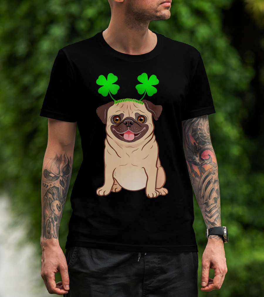 Cute Pug Adorned In Shamrock Headband With Happy Expression T-Shirt
