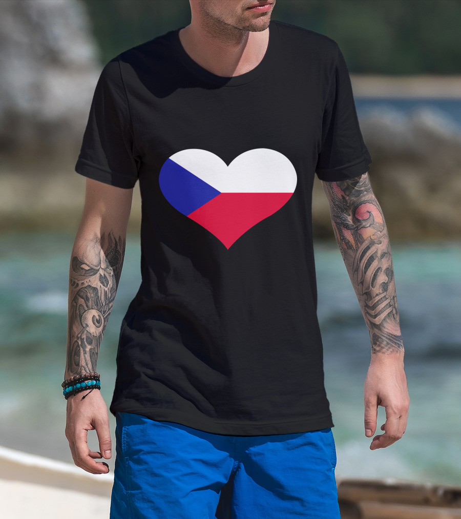 The Czech Republic Flag Heart Shape T-shirt is designed for everyday wear and a consistent fit. Fabric is pre-shrunk ring-spun cotton with durable stitching. See the size chart below for exact measurements.