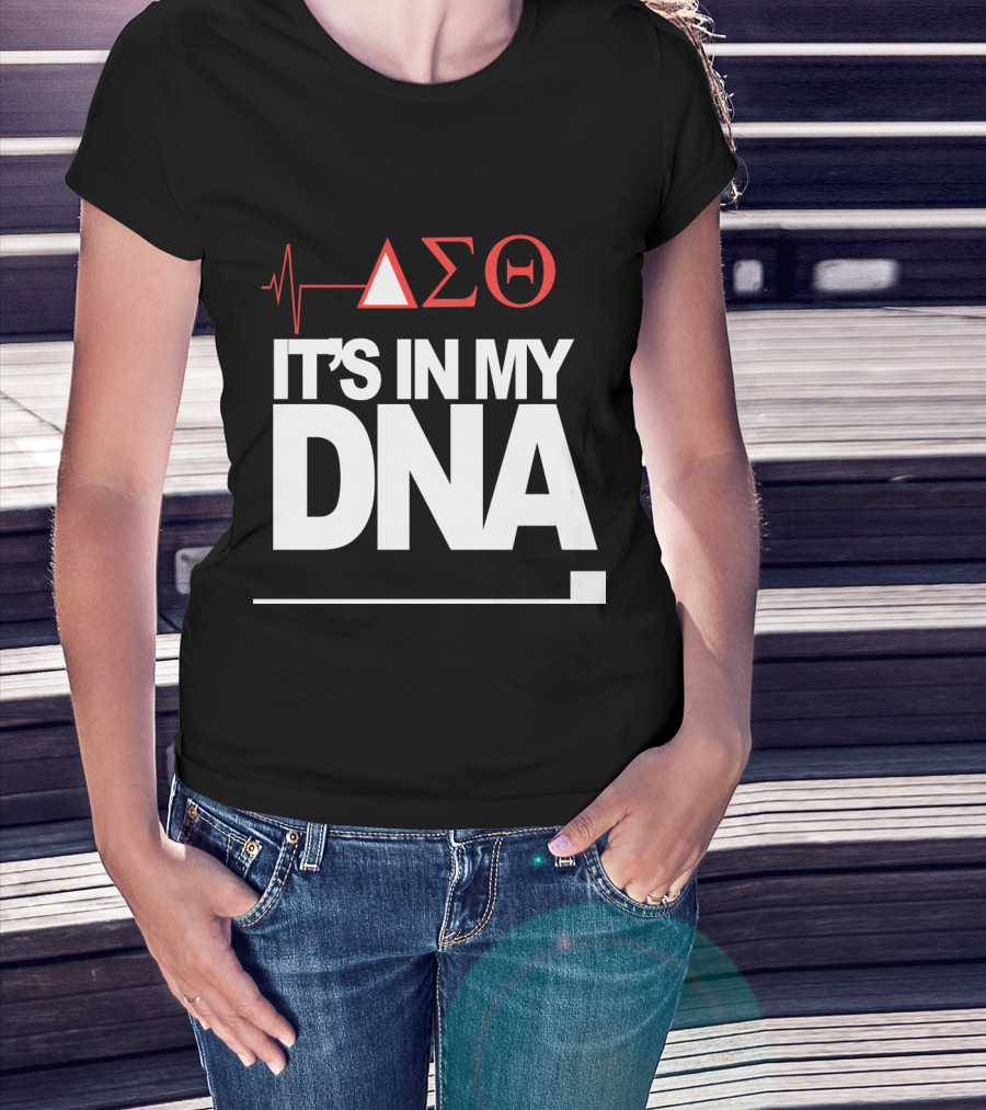 The Delta Sigma Love It's in My DNA T-shirt is designed for everyday wear and a consistent fit. Fabric is pre-shrunk ring-spun cotton with durable stitching. See the size chart below for exact measurements.