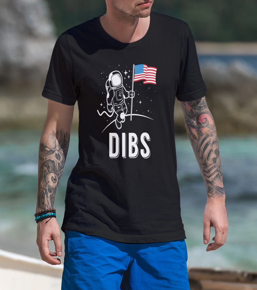 Astronaut Dibs On The American Flag Moon Landing T-Shirt