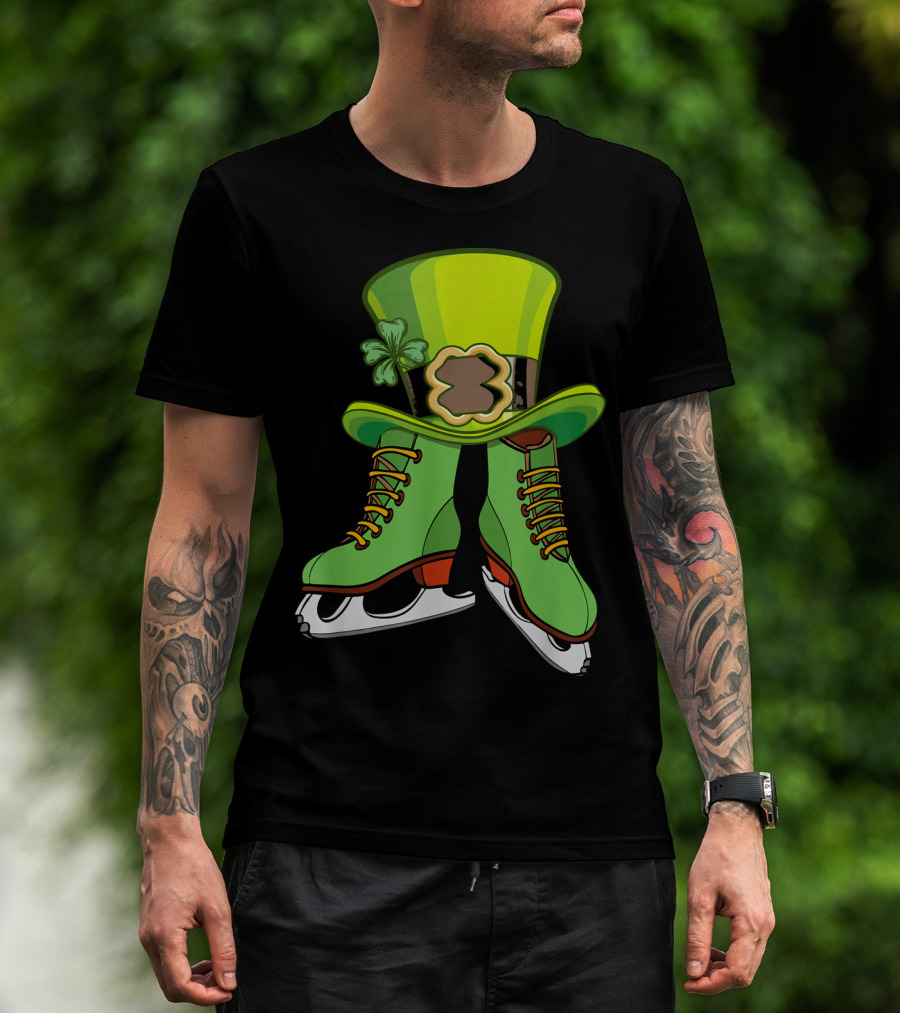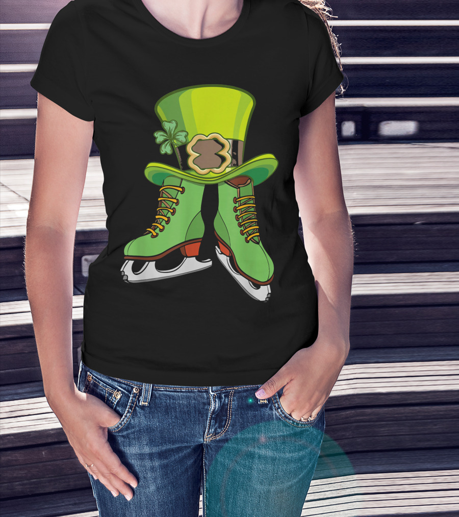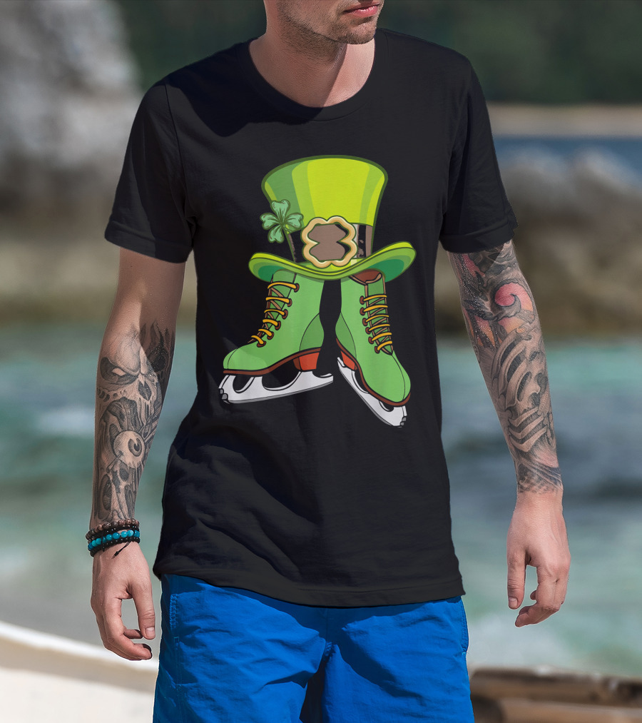Leprechaun Figure Skating St Patricks Green Hat And Skates T-Shirt