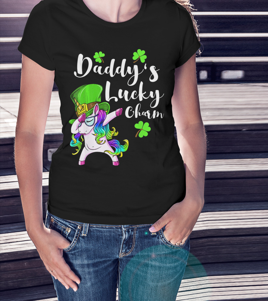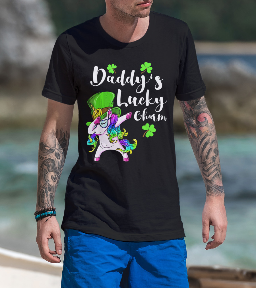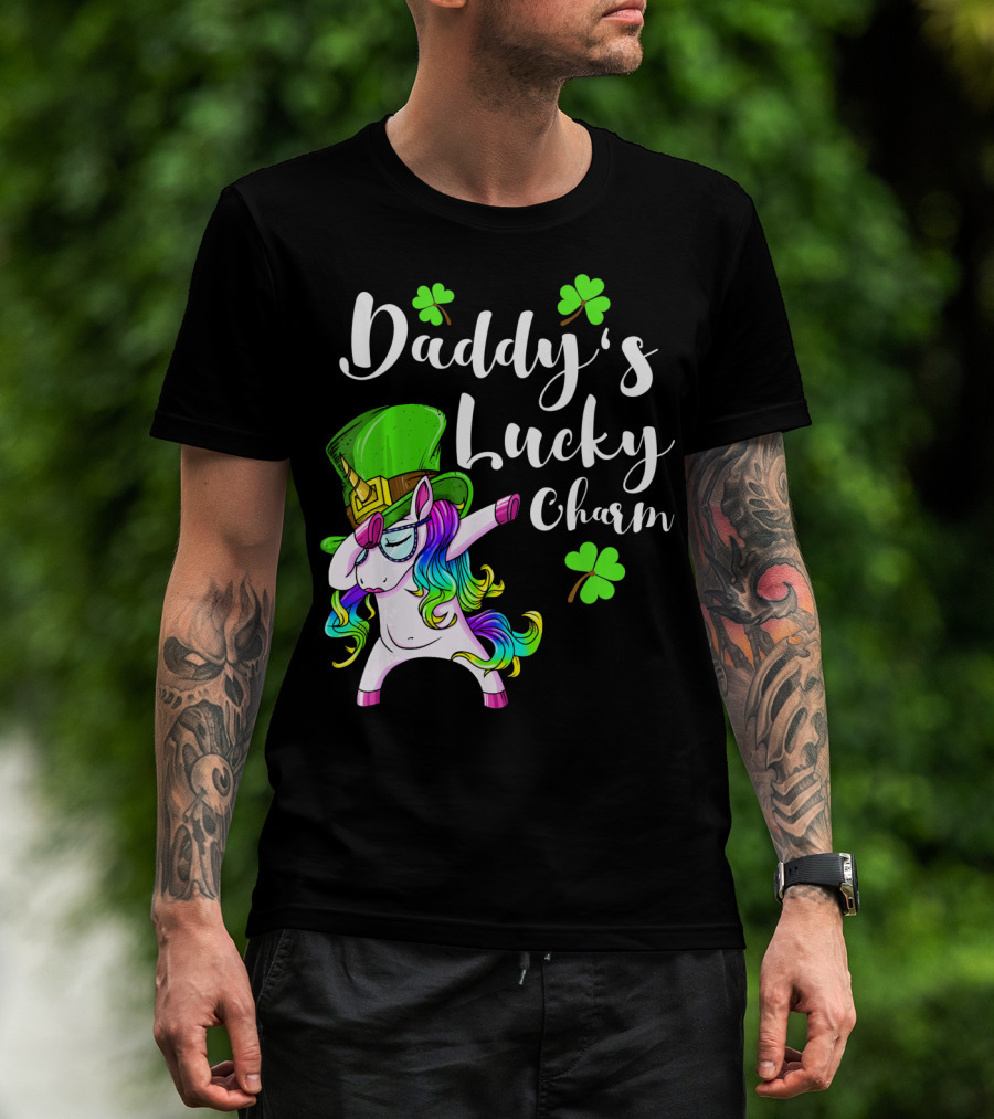 Daddy's Lucky Charm St. Patrick's Day Unicorn With Shamrock Hat T-Shirt