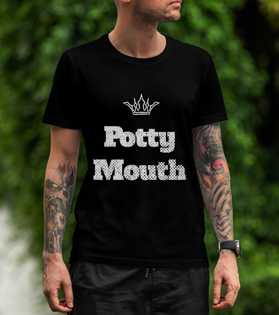 The Potty Mouth with Crown Motif T-shirt is designed for everyday wear and a consistent fit. Fabric is pre-shrunk ring-spun cotton with durable stitching. See the size chart below for exact measurements.