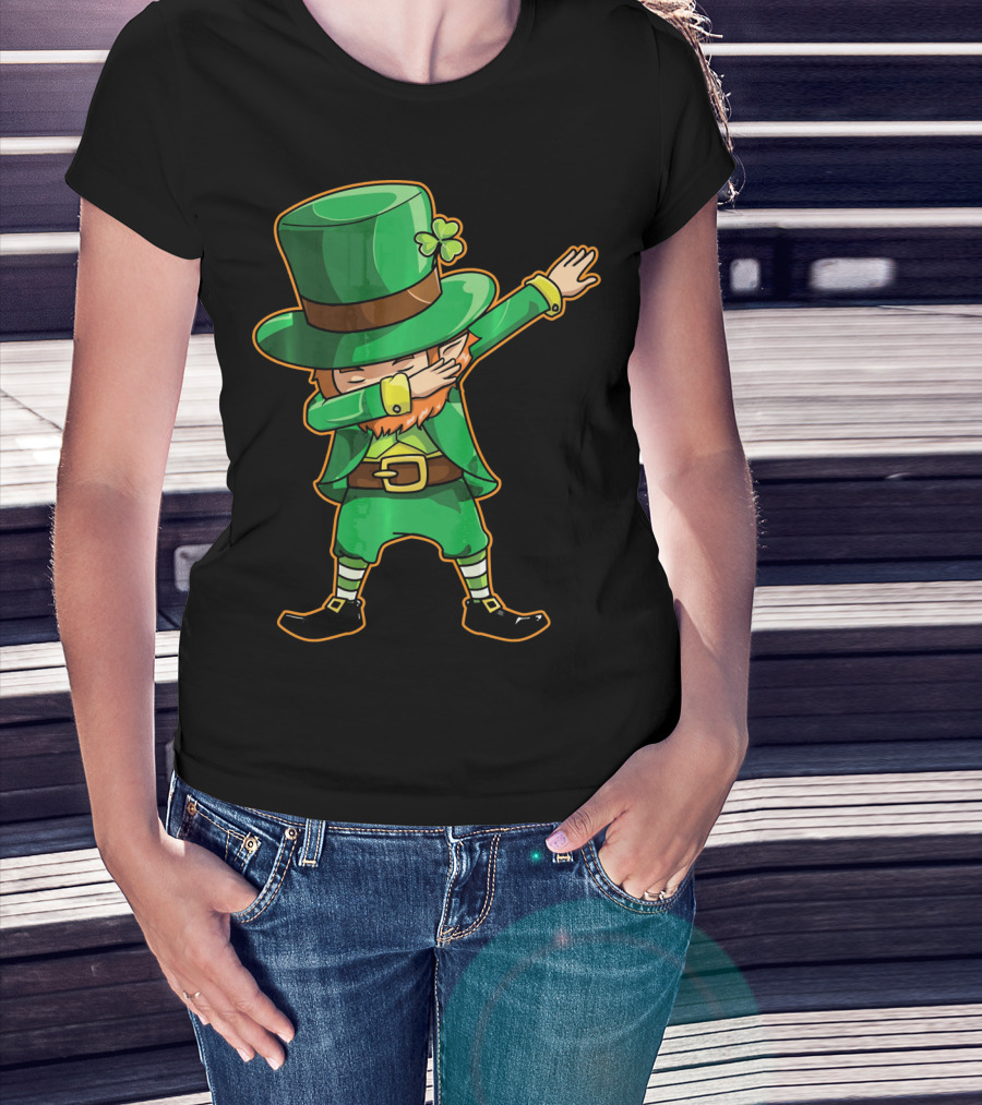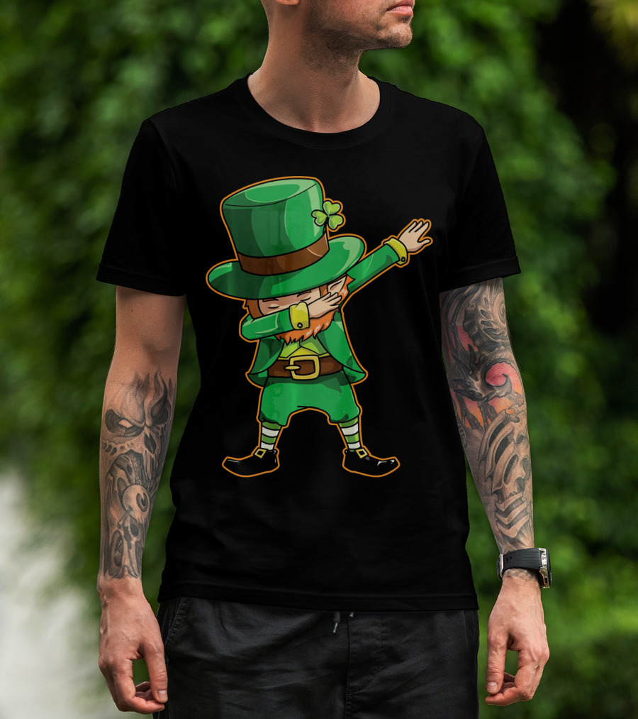 Funny Leprechaun Dabbing Dance Icon In Green Outfit And Hat T-Shirt