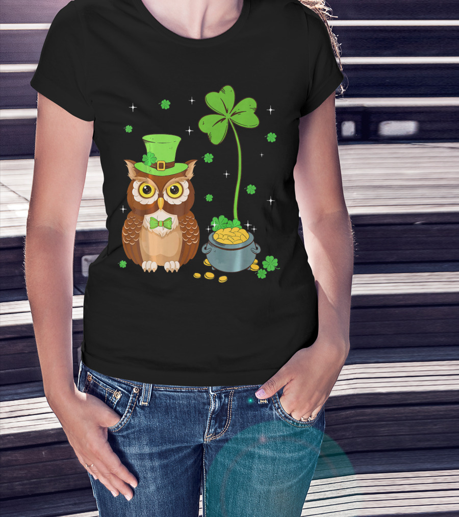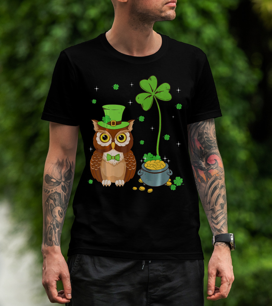 Shamrock Leprechaun Owl Pot Of Gold T-Shirt