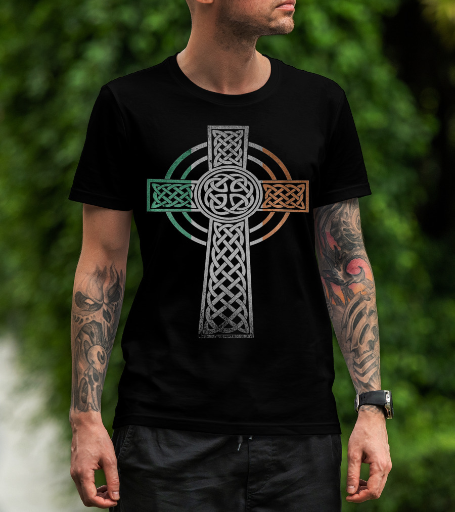 Celtic Cross With Irish Flag Colors Irish Pride T-Shirt