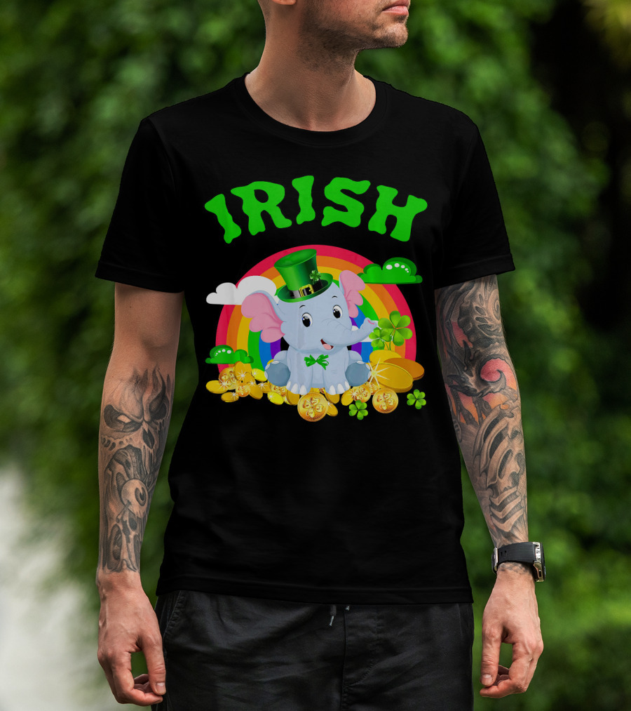 Irish Elephant St Patricks Day Rainbow Coins Clover T-Shirt
