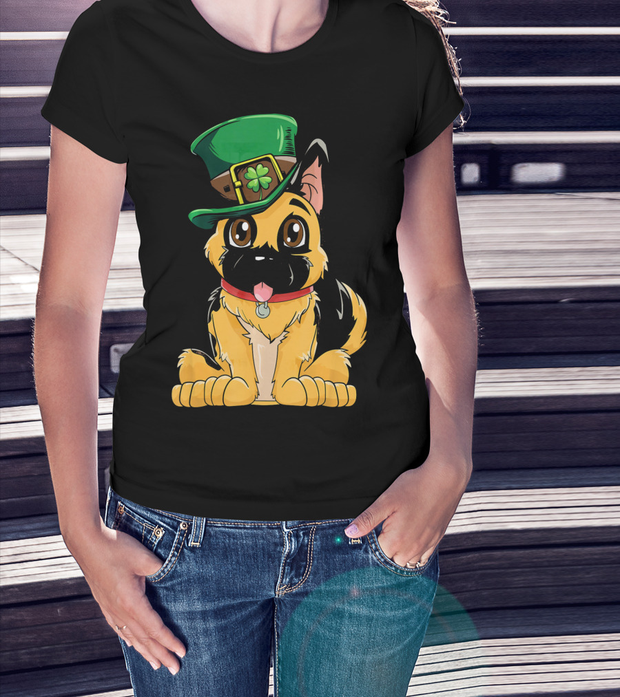 The German Shepherd Wearing Leprechaun Hat with Clover T-shirt is designed for everyday wear and a consistent fit. Fabric is pre-shrunk ring-spun cotton with durable stitching. See the size chart below for exact measurements.